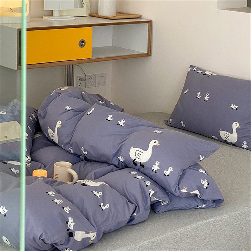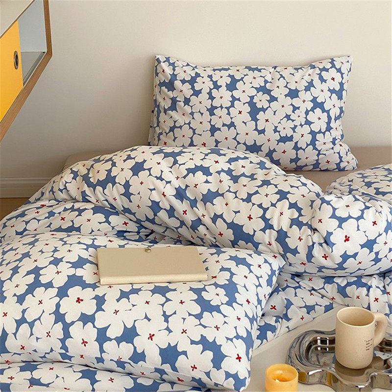 Knitted Cotton Printed Tianzhu Cotton Bed Four Sets Small Fresh And Skin Pure Cotton Linen Bed Hat Single Bed Three Sets