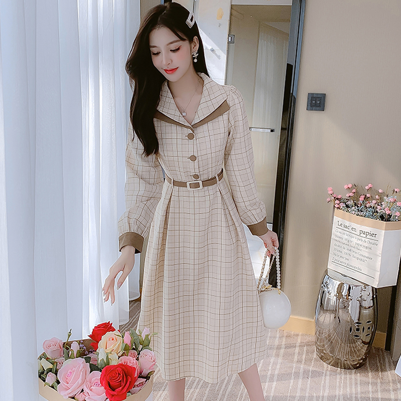 Advanced Sensational checkered Dress Children Spring Dress 2022 New Style Retro Temperament Cashew long skirts