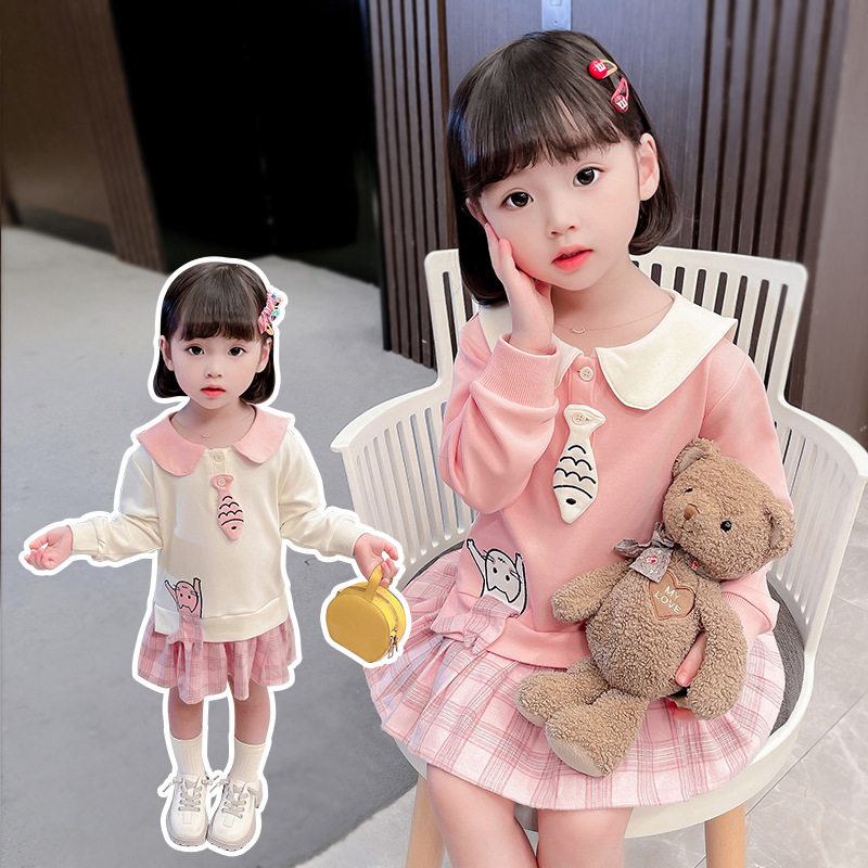 Girls dress Spring and Autumn Foreign Atmosphere Kids Korean Edition 2022 New Kids Cute College Style Little Girl Skirt Tide