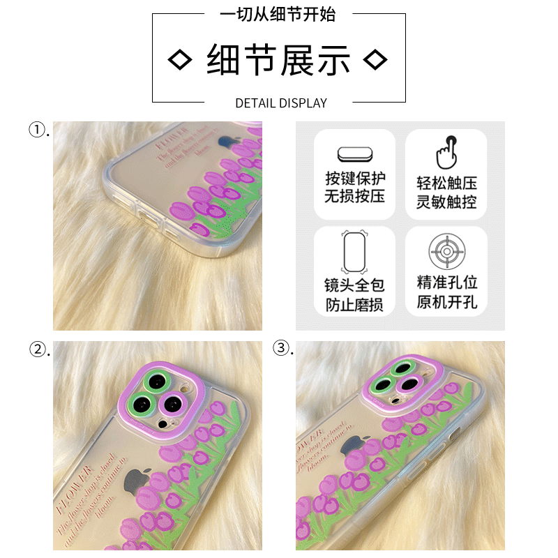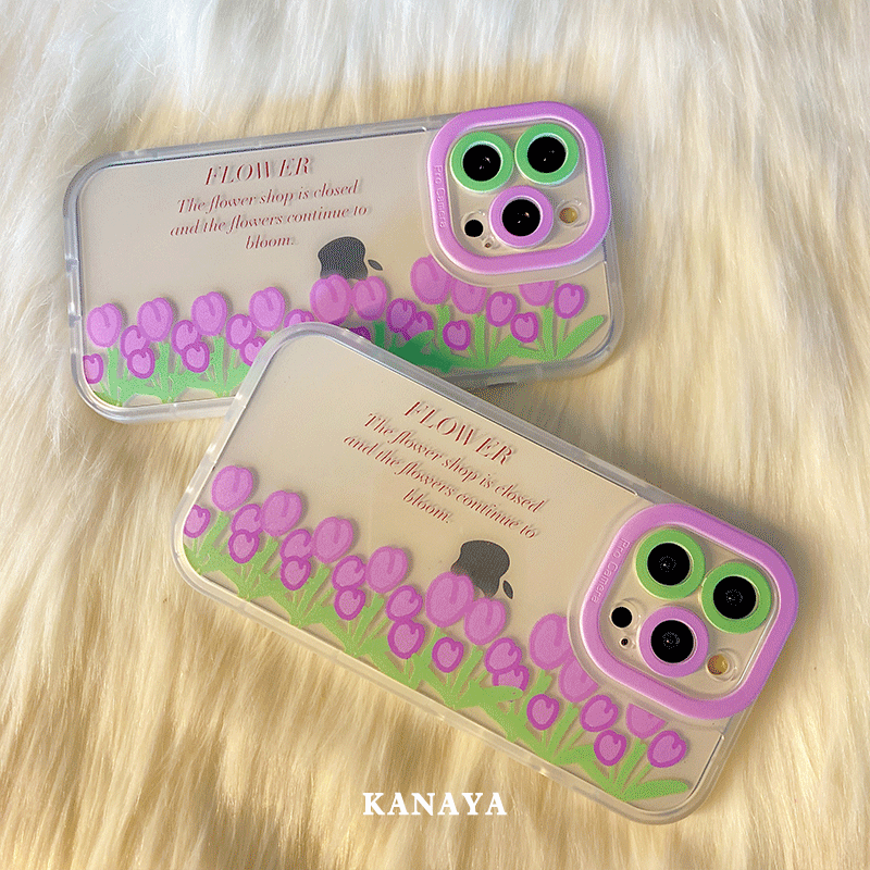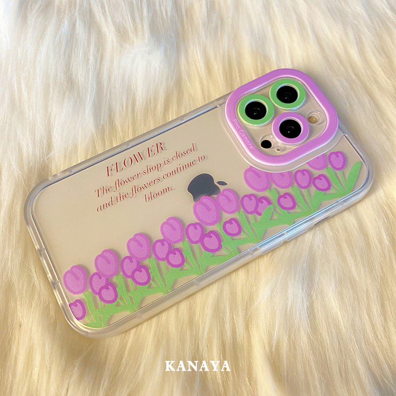 ins Korean wind purple tulip suitable for apple 13 phone protection shell 13promax new iphone anti-fall tide card 11promax fresh 12pro female