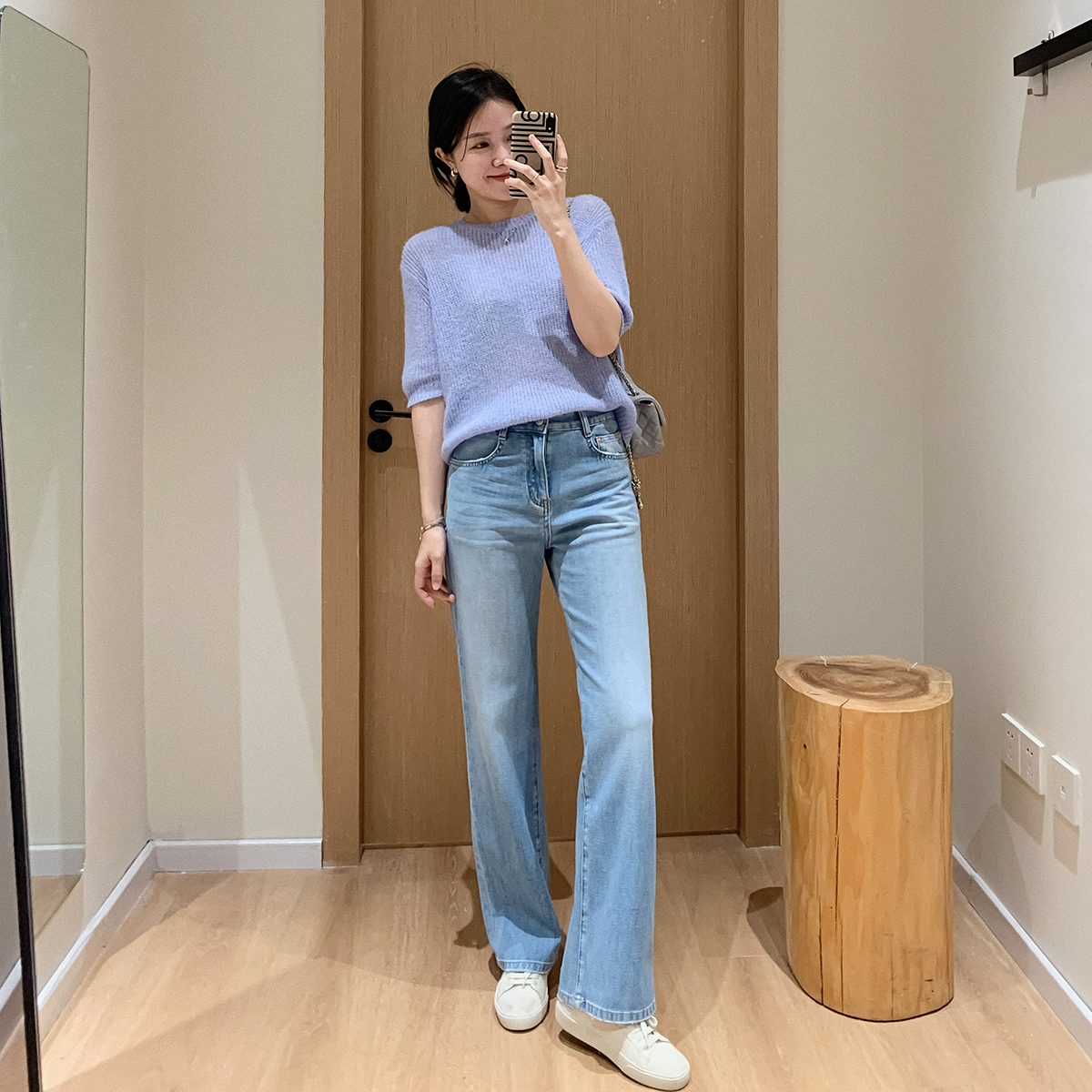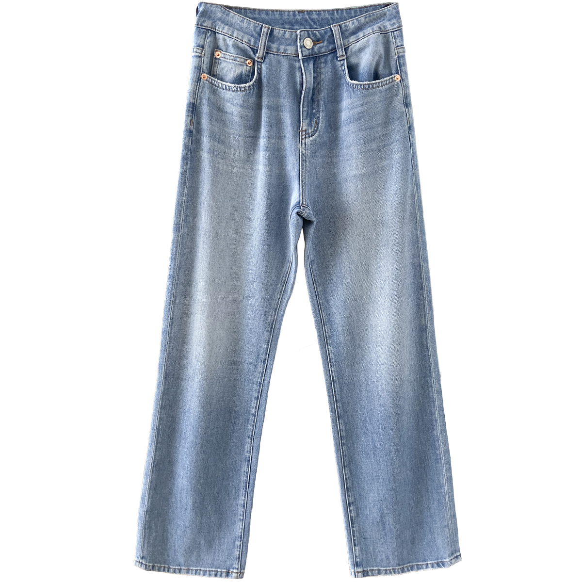 Large Bite Homemade Four Sides With Water Washed Shallow Blue High Waisted Jeans Loose Casual Pants Children Spring Summer Pituitary Pants