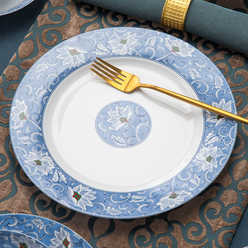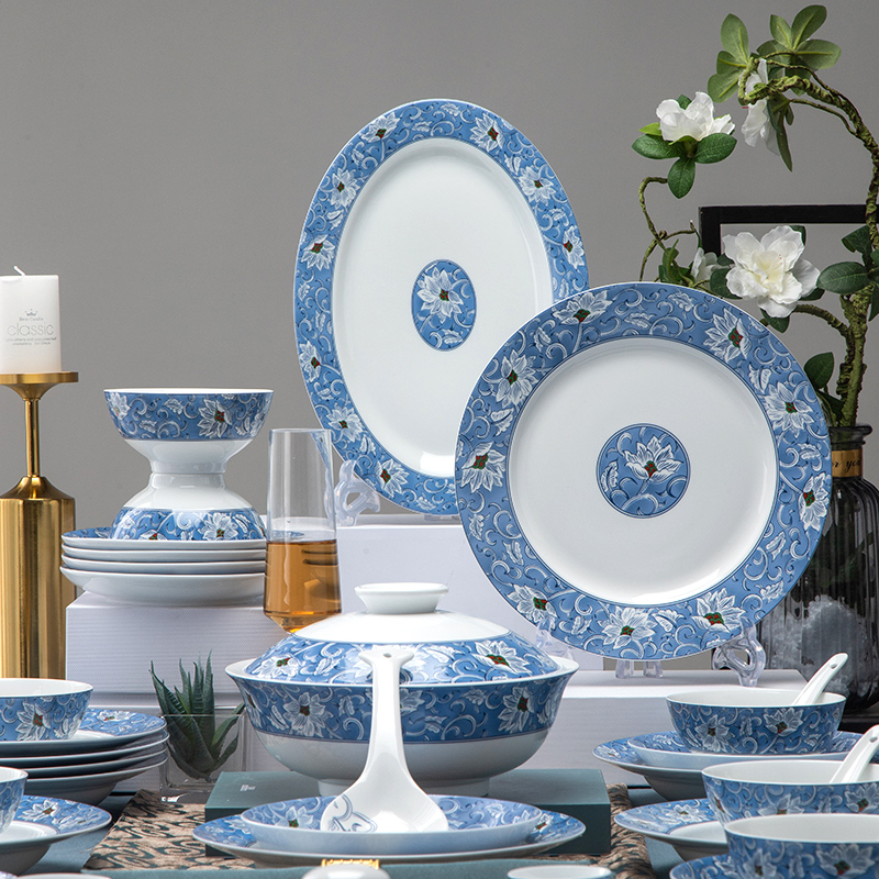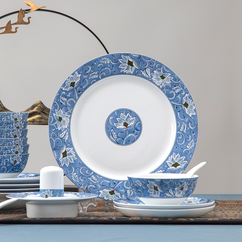Hongye Ceramics Official Flagship Store 58 Blue Brocade Lily Chinese Porcelain Tableware Jingdezhen Dishes Set Home