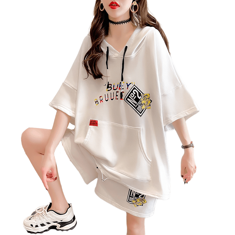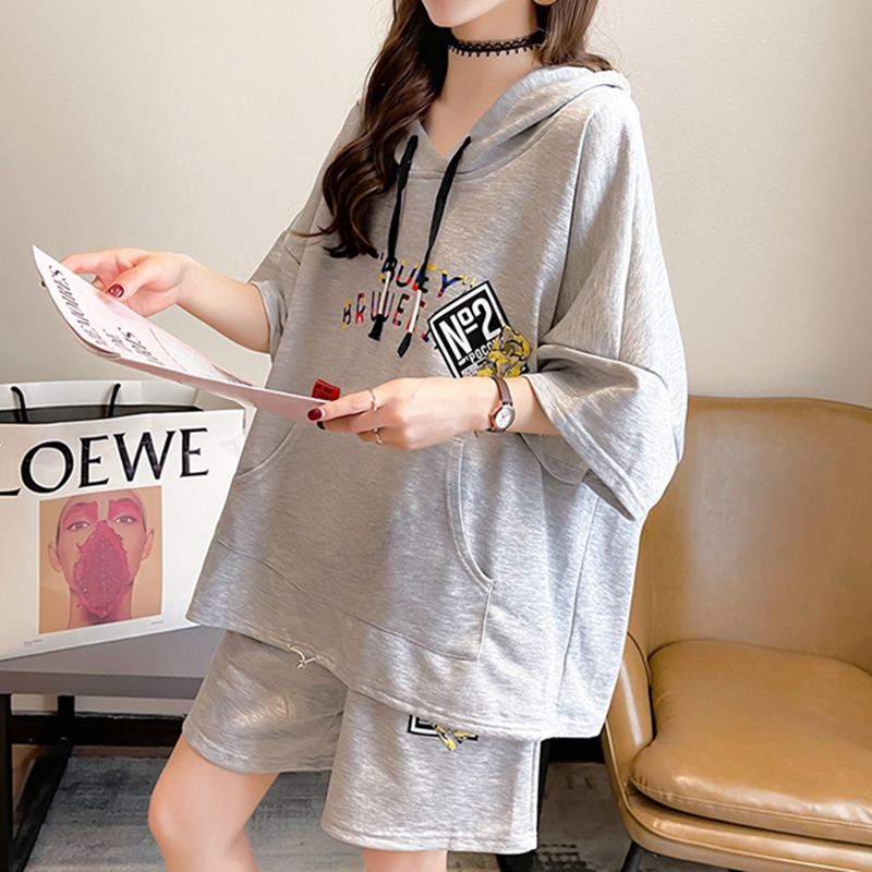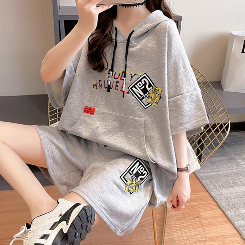 Fat Girl 11 Short Sleeve T-shirt Shorts Two Sets Summer 13 Middle School Student 12 Female Great Child Sports Casual Suit