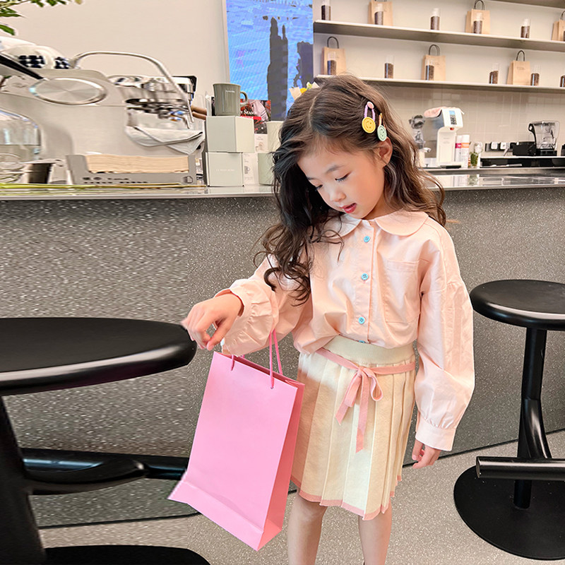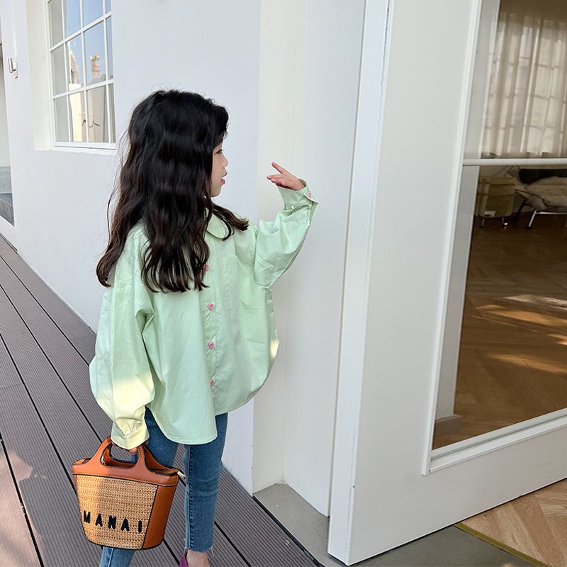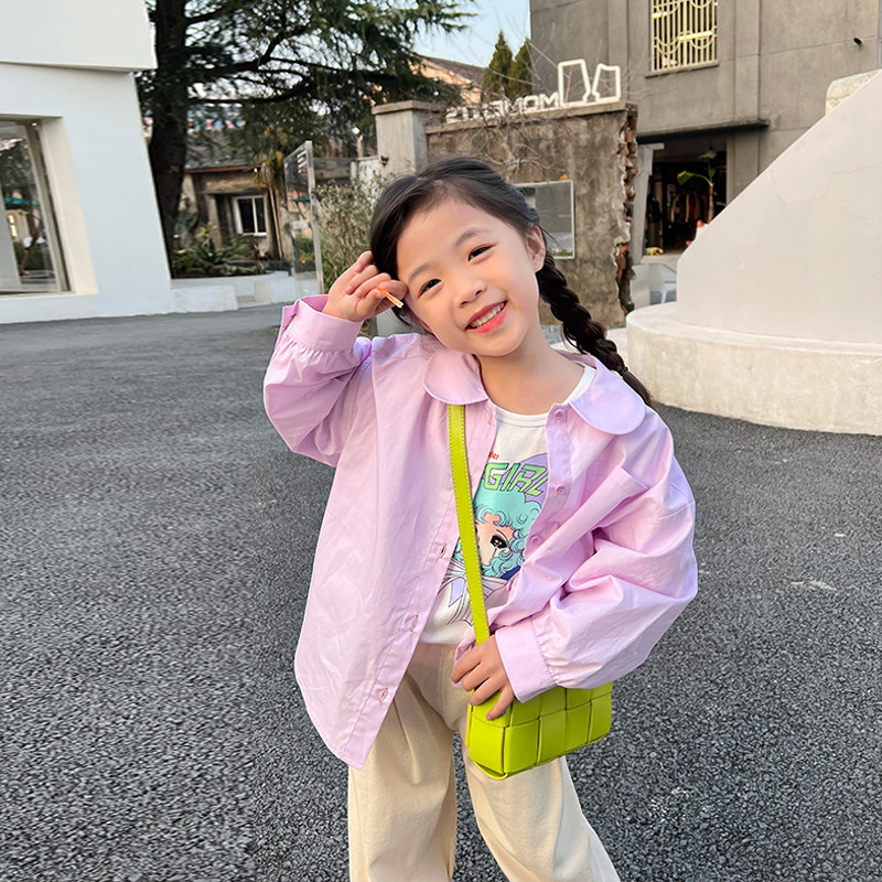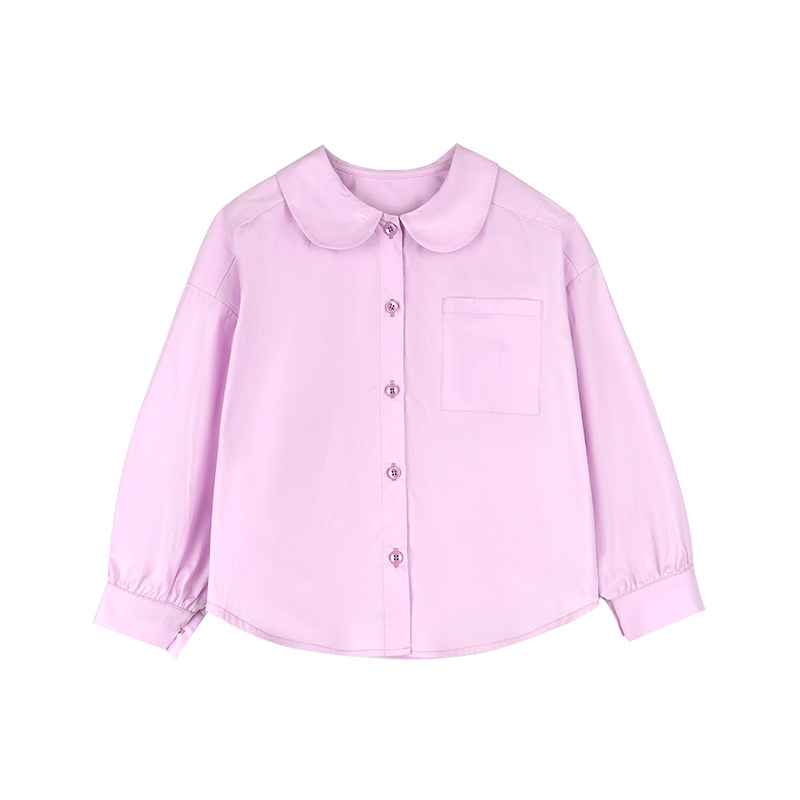 Blue Baby Dads Girl Doll Collar Shirt 2022 Spring Dress New Korean Version Foreign Pie Net Red Women's Pure Color Blouse Tide