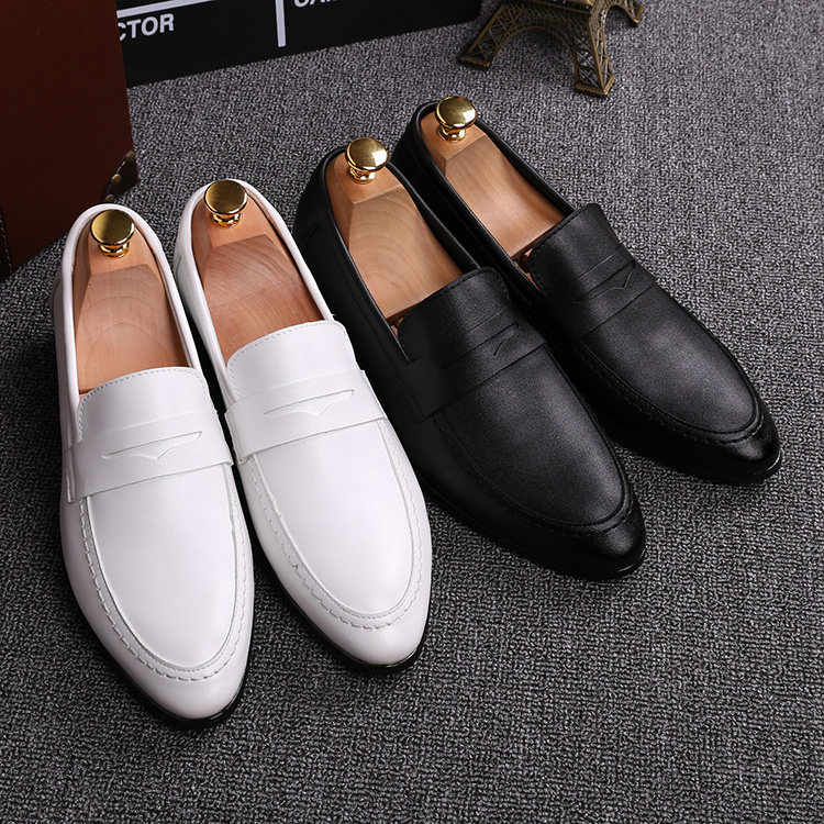 European station genuine leather white leather shoes men's inner heightening breathable spring and summer lazy man One foot pedal casual Inron pointed youth