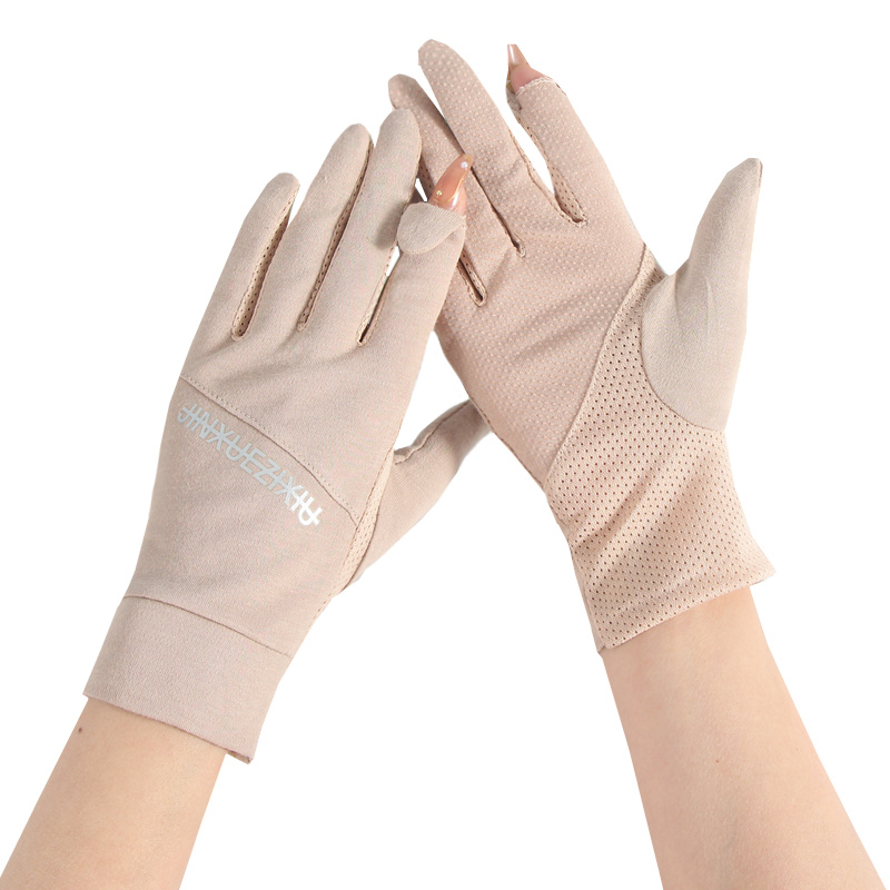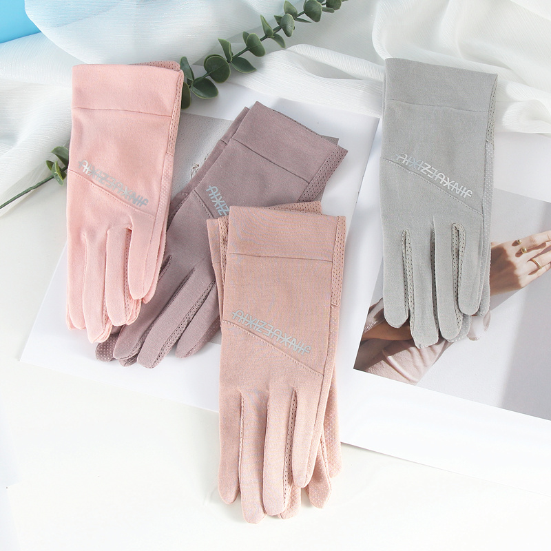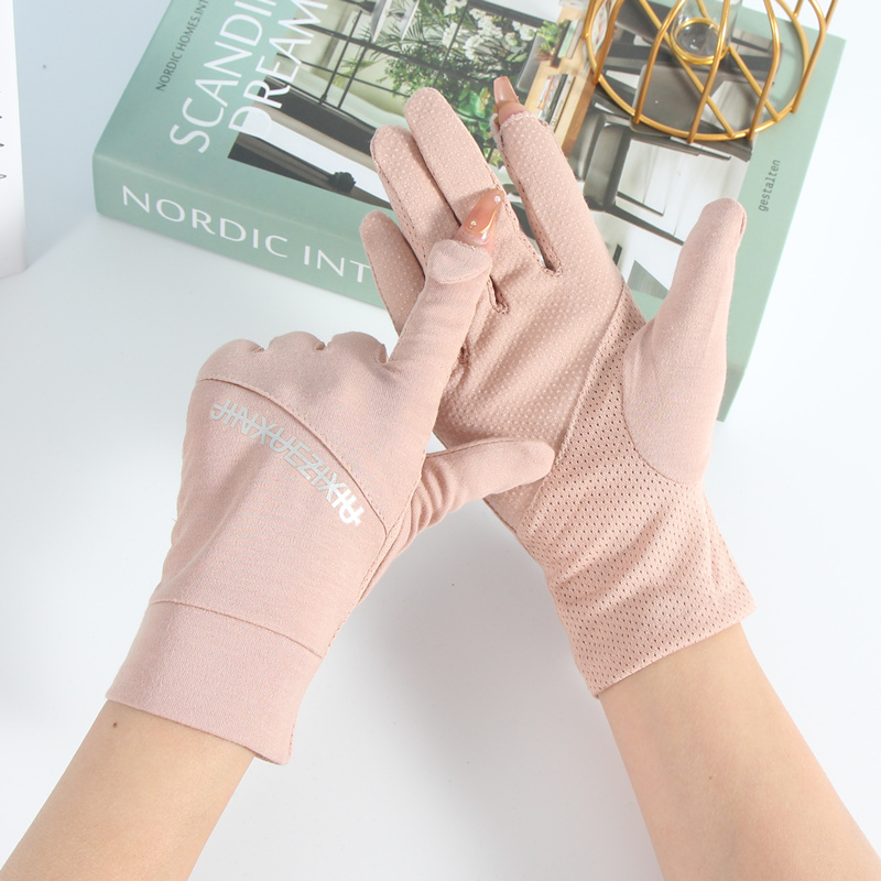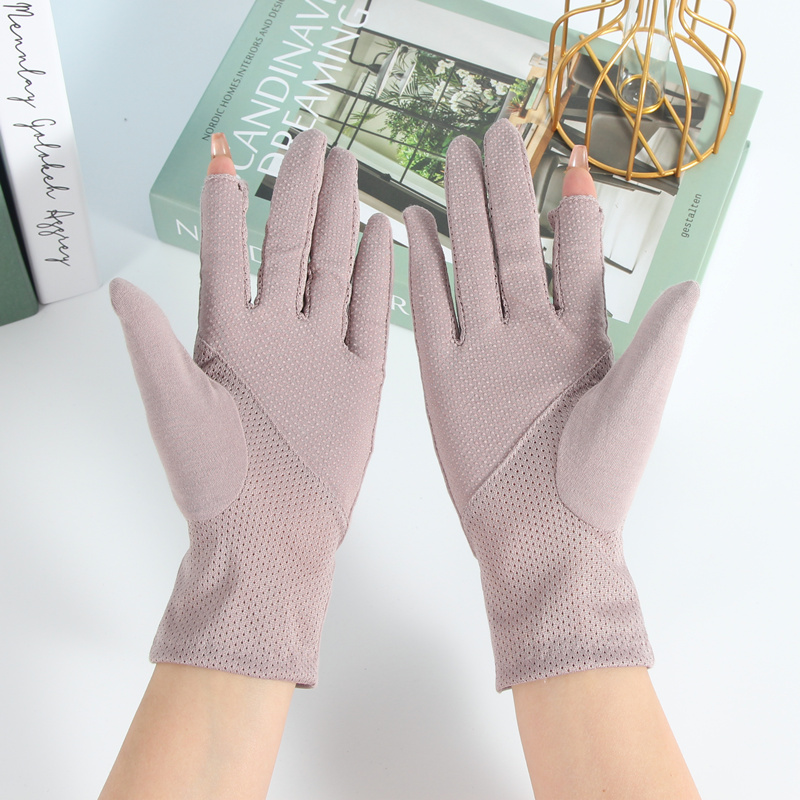 Sun Protection Gloves Lady Thin Spring Short Movement Flip Flops Pure Cotton Non-slip Breathable tea Driving riding summer