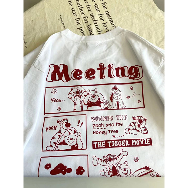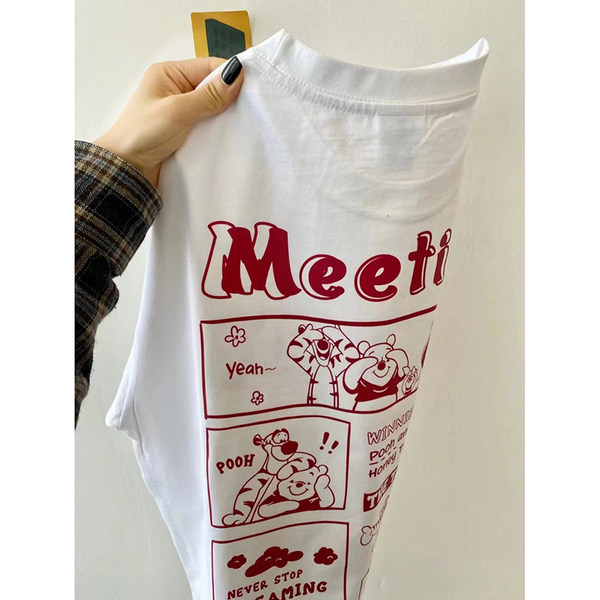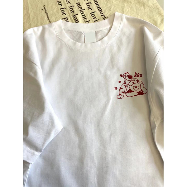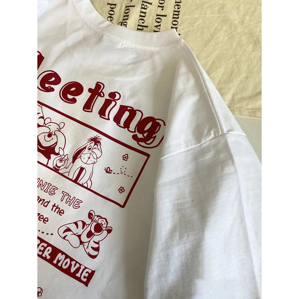 Clear Barn Pick Up Leak ~ Special Cabinet Withdrawal Retro American Small Bear Printed Short Sleeve T-shirt Woman Loose Korean Version Half Sleeve Blouse Tide