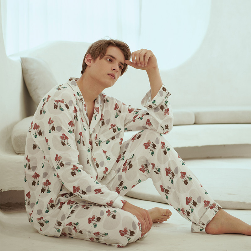 Nest Designs men's double-layer gauze long-sleeved home clothes double-layer gauze autumn and winter new long-sleeved trousers sleeping