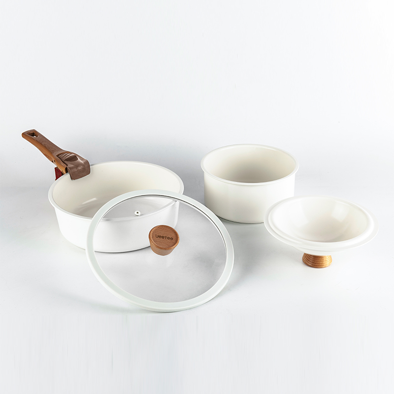 Jeetee Nordic detachable white ceramic pot set high-value non-stick pot kitchenware set JT-S01