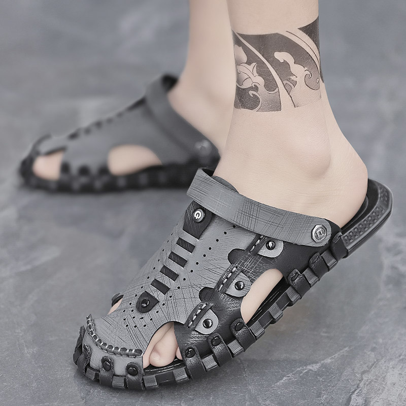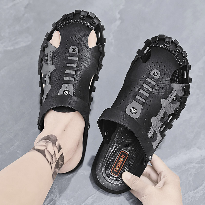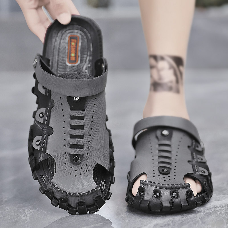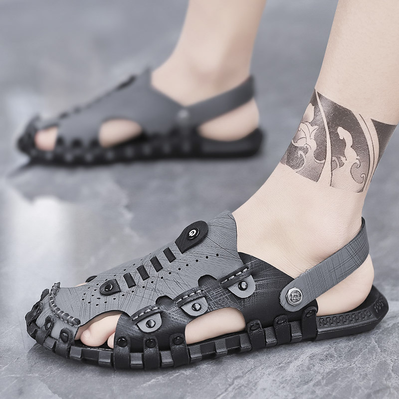 Summer Leisure beach leather sandals Men's Baotou Driving Dual-purpose exterior wearing summer Men's deodorant Soft bottom sandals Slippers Shoe Tide