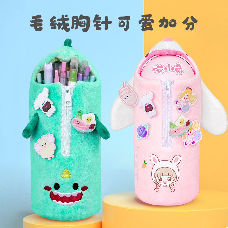 Cute Favorites Plush Standing Pen Bag Large Capacity Elementary School Kids Girl Korea Girl Hearts Wins Day Series High Face Value Hand Pencil Bag Cute Cartoon Creative Boy Net Red Pencil Case 2022 new