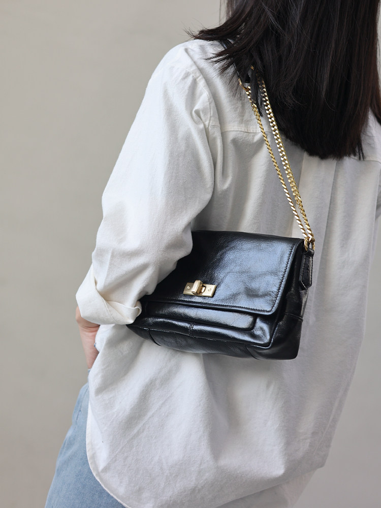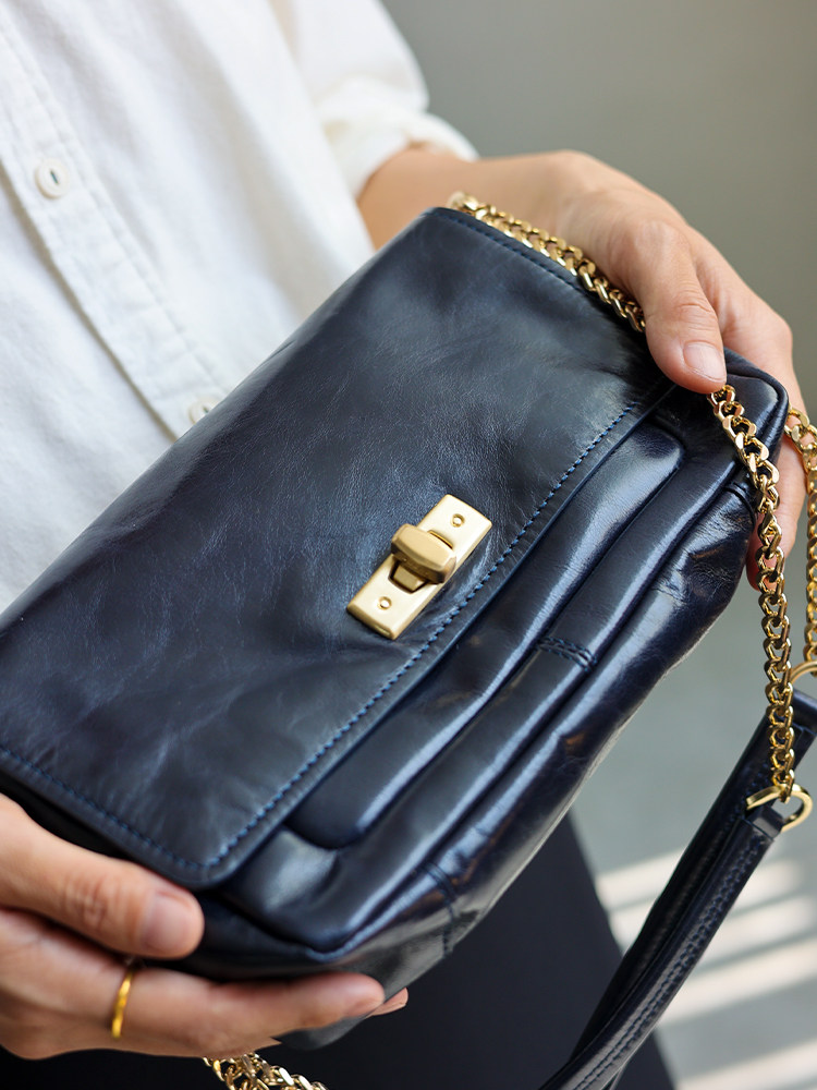 Dig to the treasure Texture Invincible Superior Feel 100 Lap Chain Bag Lady Single Shoulder Inclined Satchel Genuine Leather Small Square Bag
