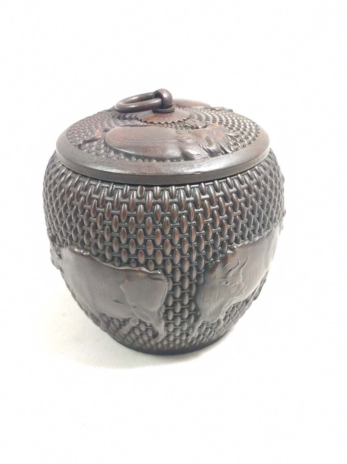 Pure copper five-cow tea leaf jars with property sealed storage tank moisture-proof and insect-proof antique pendulum pieces
