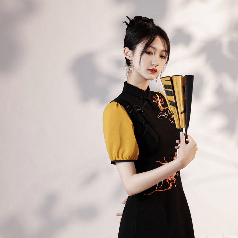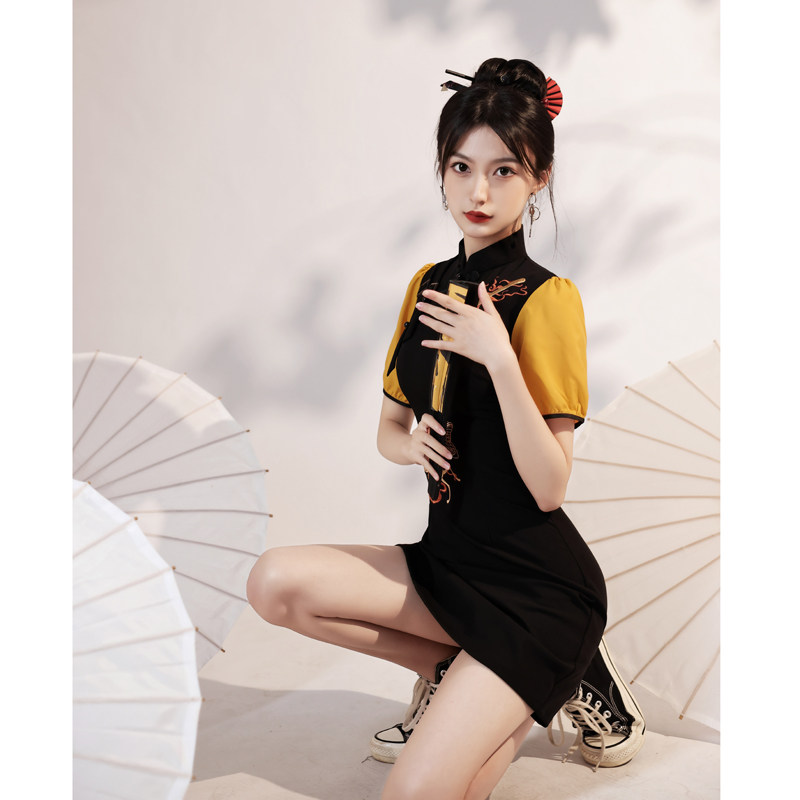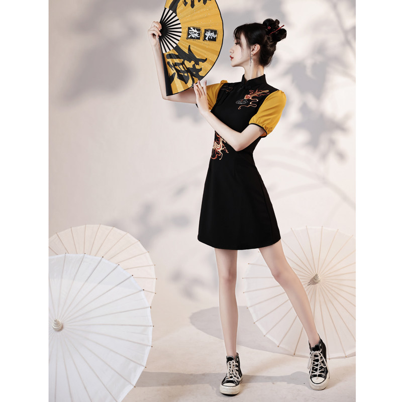 Erosion Bone Qipao Small Child Young young girl 2022 New embroidery advanced senses French style Chaoyang Fascia Summer