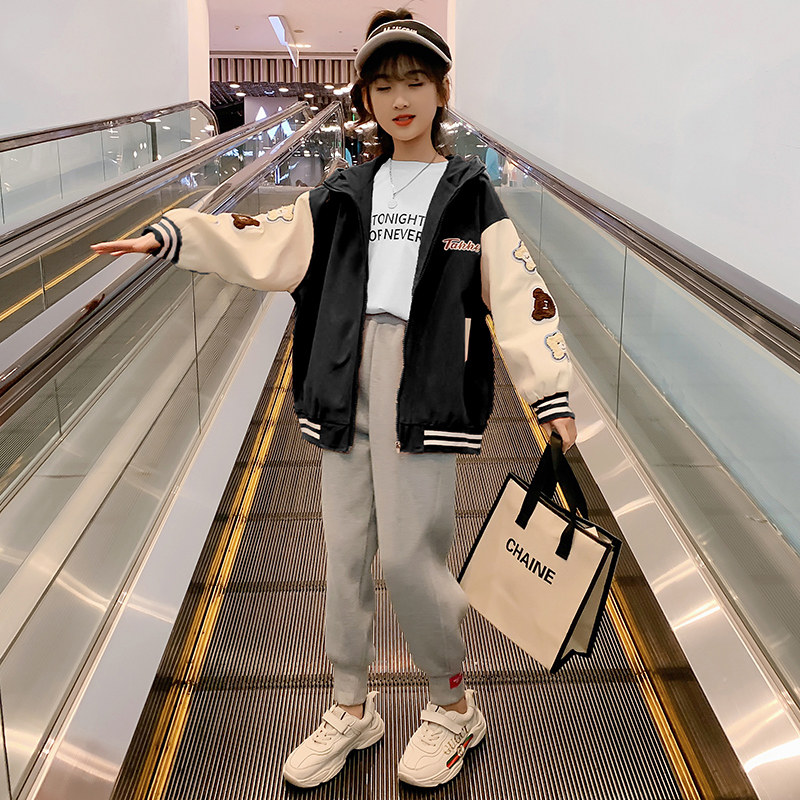 Girls coat spring and autumn new foreign style net red children's baseball uniform spring 2022 spring middle and big children's children's clothing top