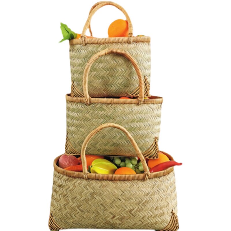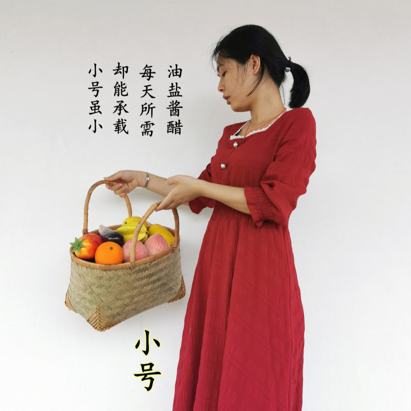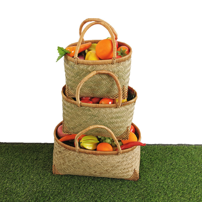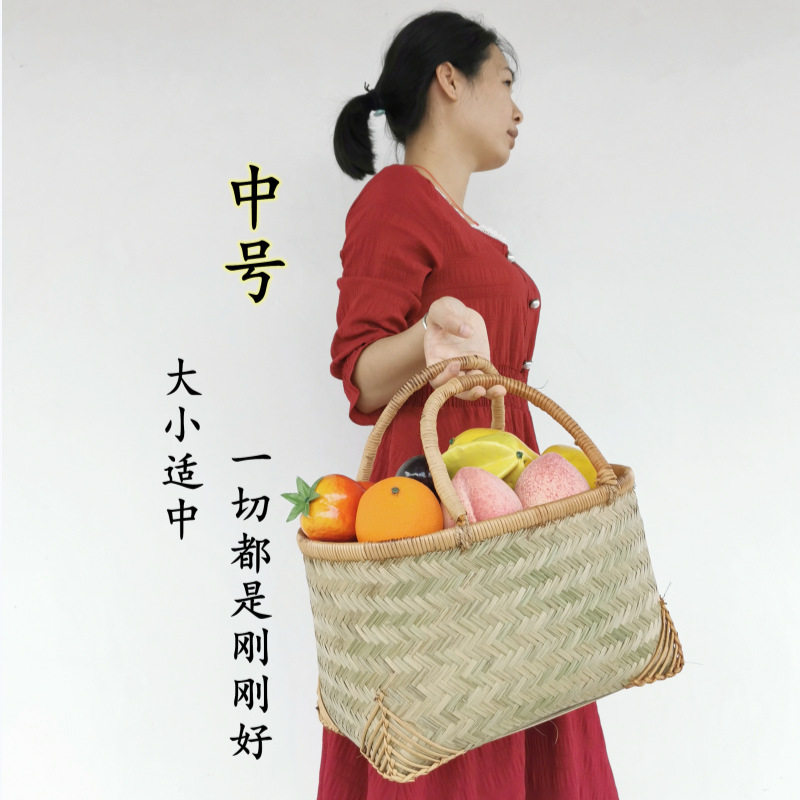 Bamboo woven portable vegetable basket household bamboo basket grocery shopping basket woven small picnic blue kitchen storage basket