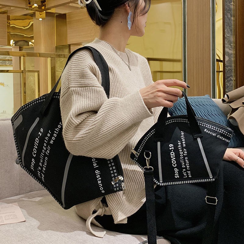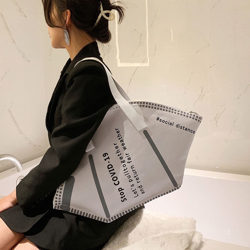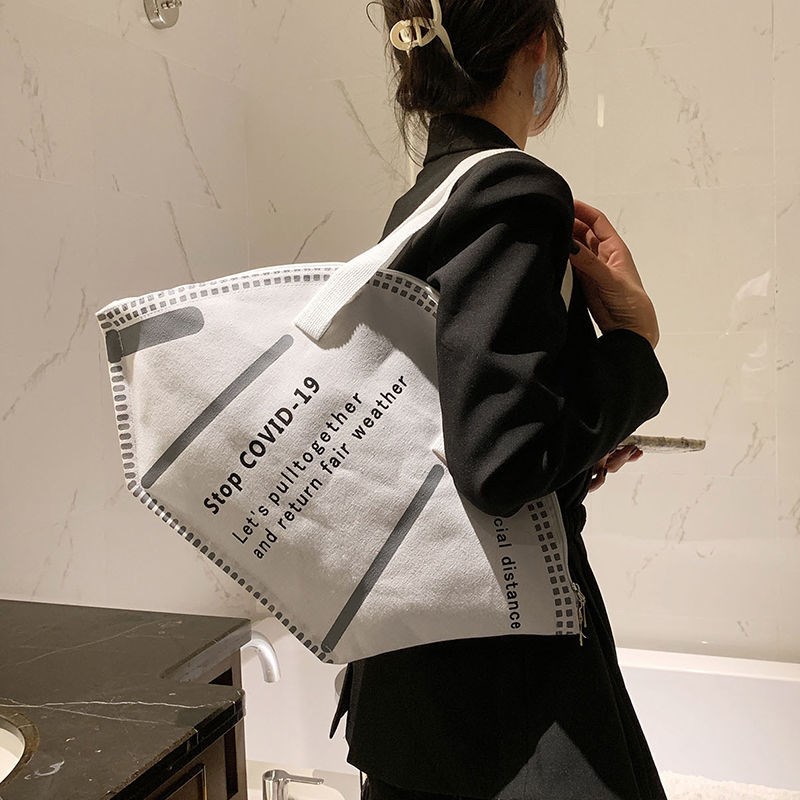 Canvas Bag Women 2021 New High Capacity Senior Yankee French Mask Package 2021 New Network