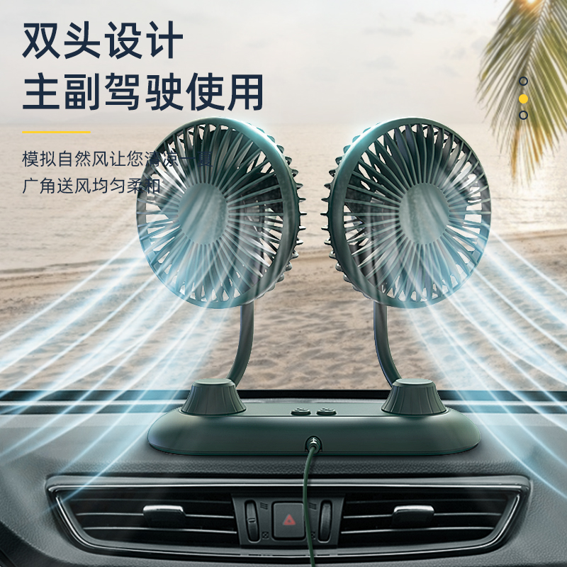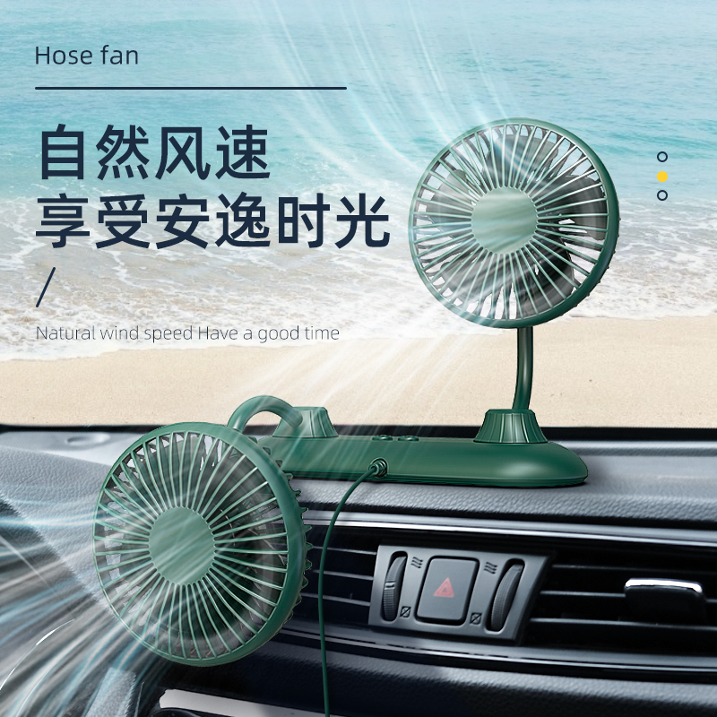 On-board USB dual head electric fan 12v petrol car with mini small fan air outlet 24v large van van