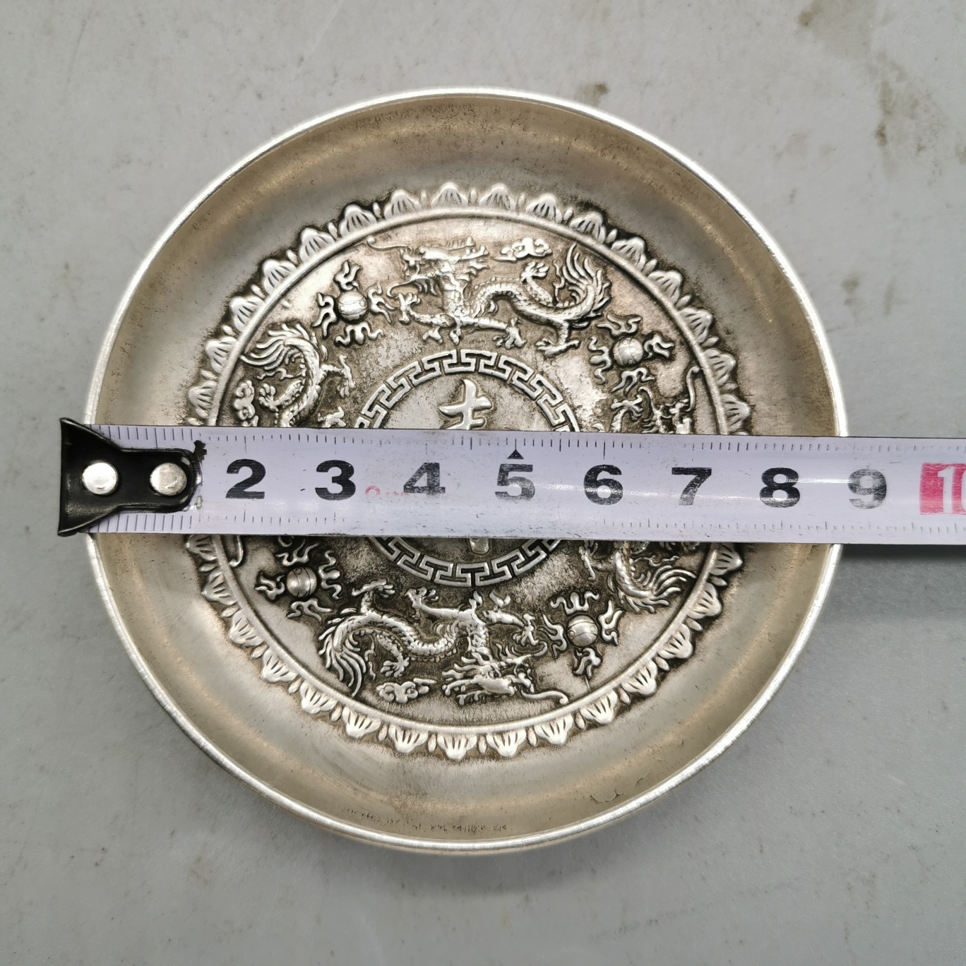 Make the old Miao silver white bronze disc Embossed Eight Immortals XII Life Jubilee Four set prices