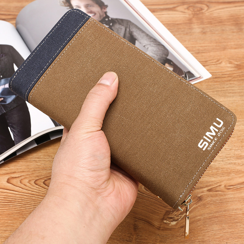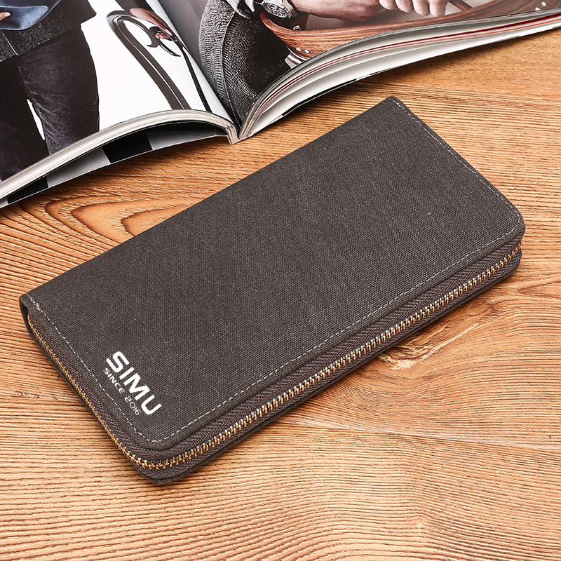 Simu wallet men's long version zipper Korean version retro vertical coin purse multi-card position clutch youth casual canvas