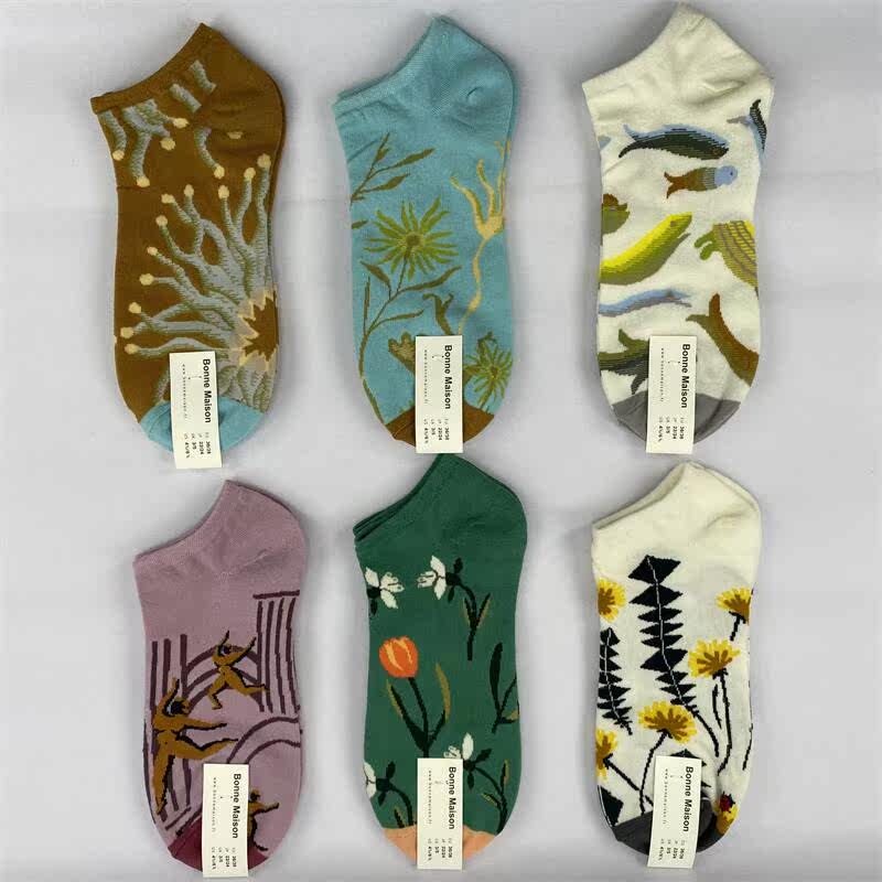 Socks Lady Short Socks Shallow Mouth Ship Socks Socks EUROPEAN AND EUROPEAN JACQUARD FLORA AND FAUNA PATTERN PURE COTTON PERSONALITY SPRING SUMMER INS TIDE SOCKS
