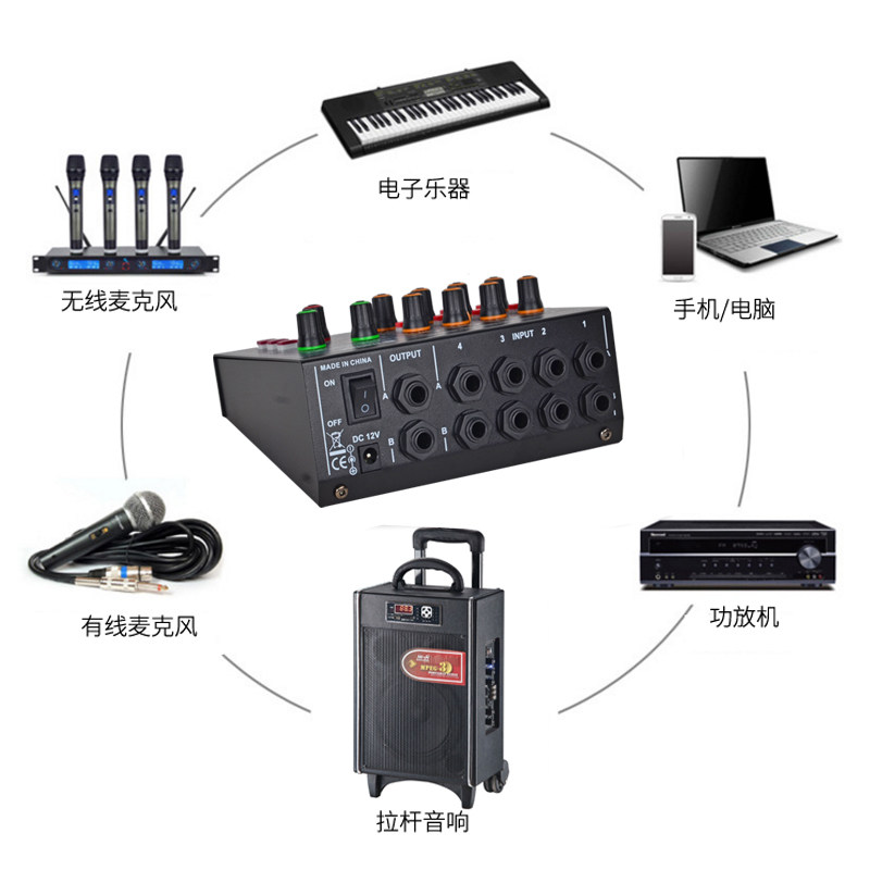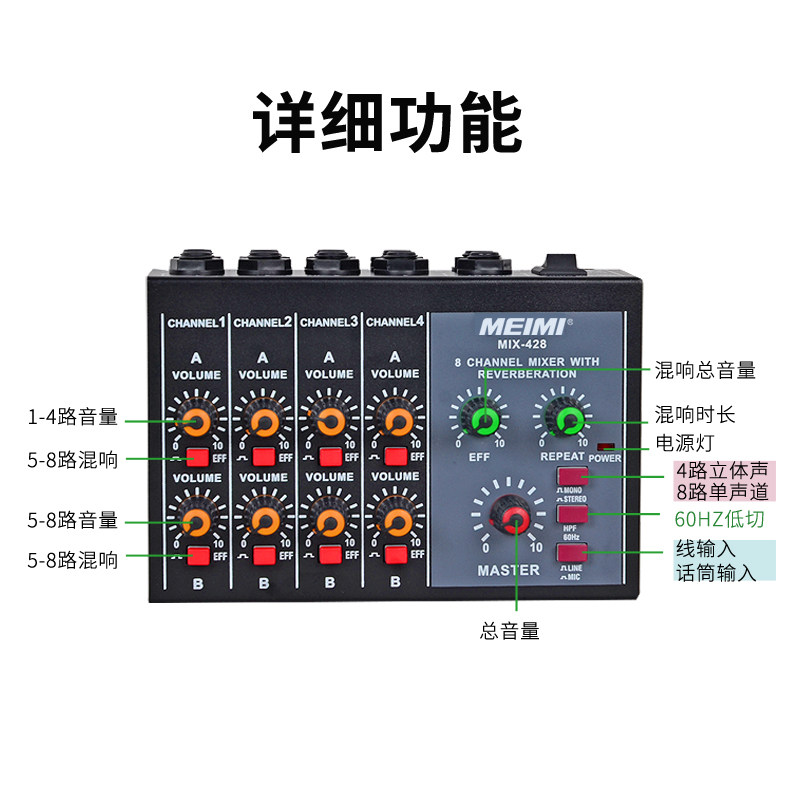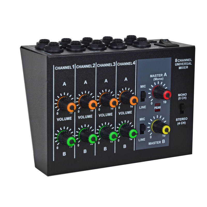 8-way mixer hub with mixer musical instrument dedicated microphone computer input cantata red and white multi-input