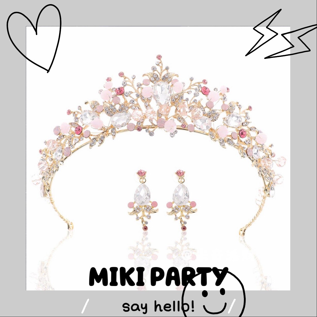 Korean ins girl birthday party crown earrings gift band set pink crystal crown ear clip set