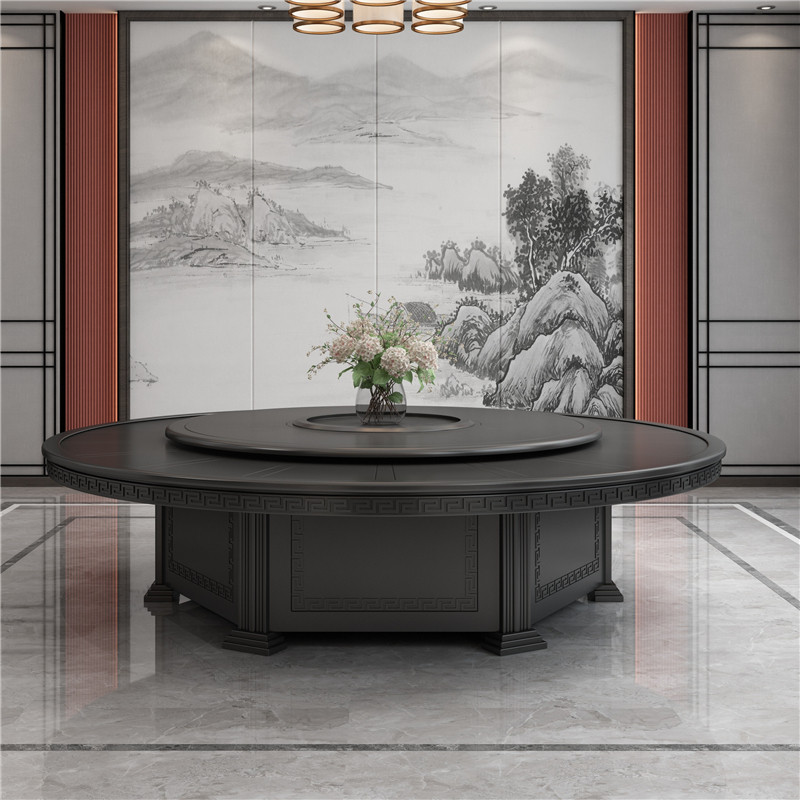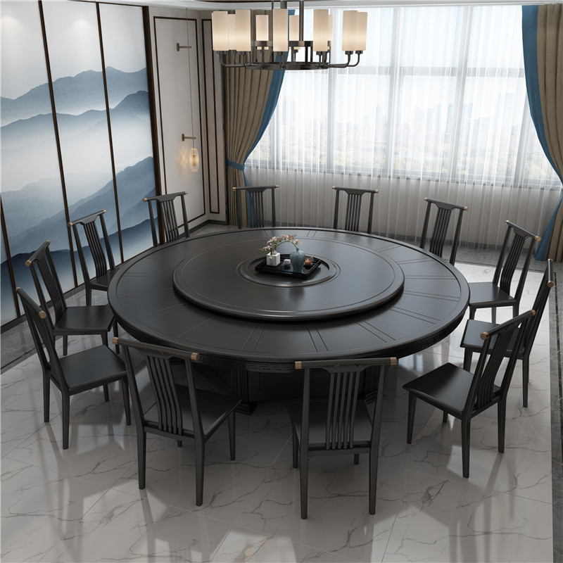 Hotel table restaurant solid wood large round table electric turntable 15 people 20 people home dining room box hot pot dining table and chairs