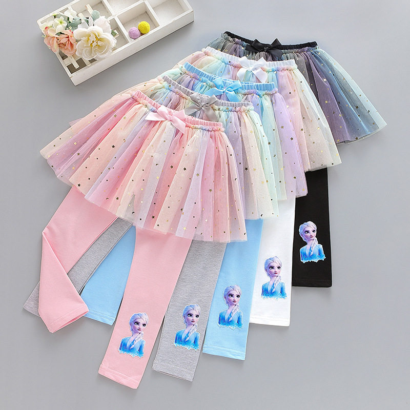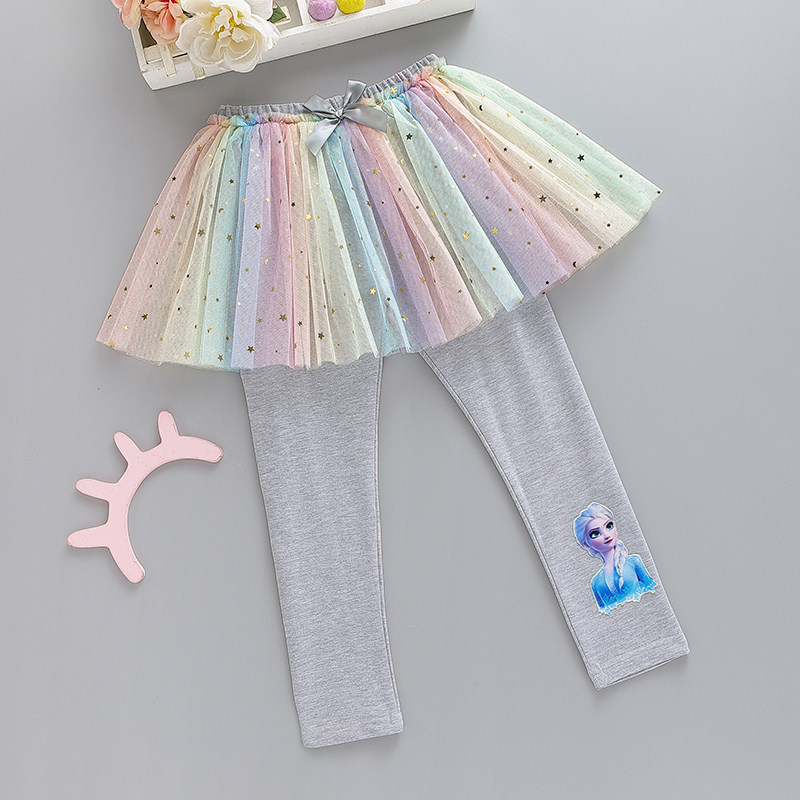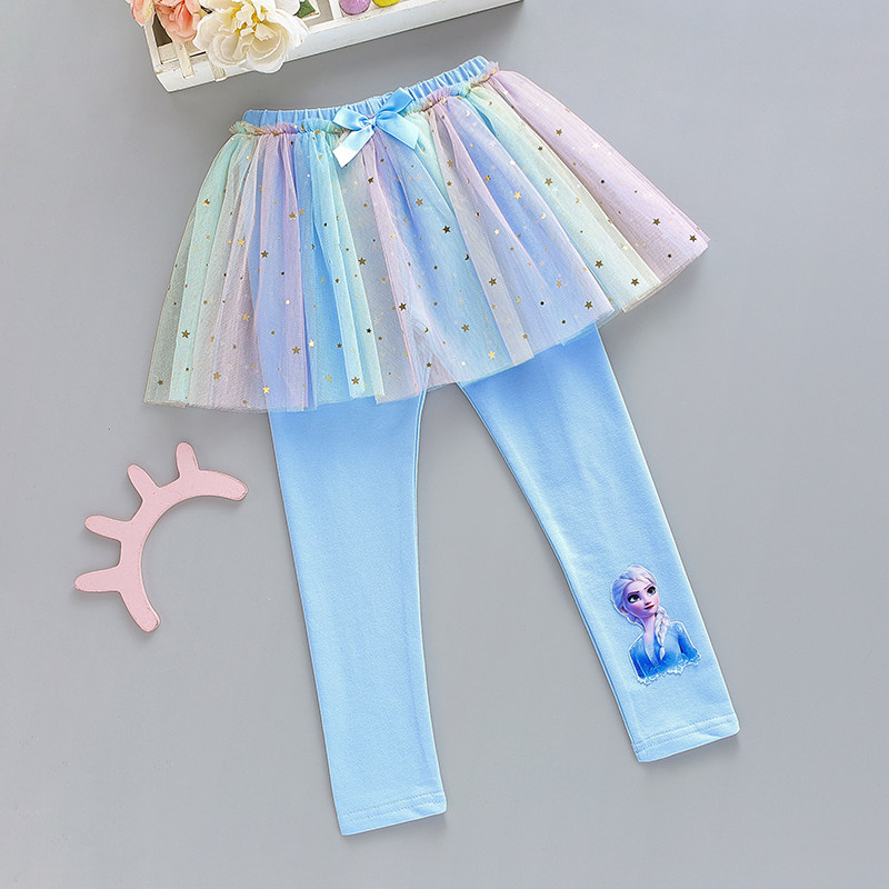 Pure Cotton Girl Inner Lap Pants 2022 Spring Dress Outside Wearing Aisha Rainbow Fake Two Dress Pants Children Spring And Autumn Pants