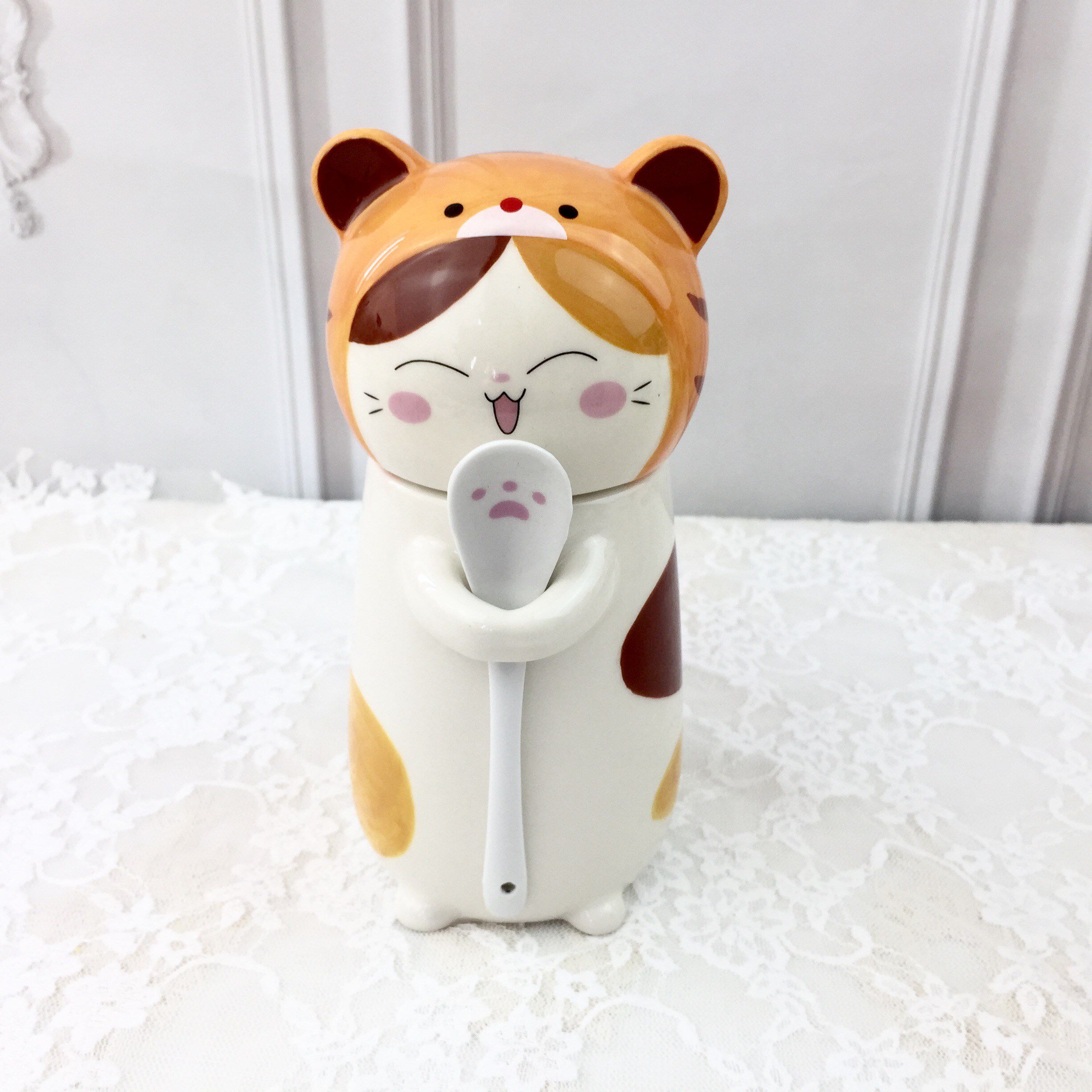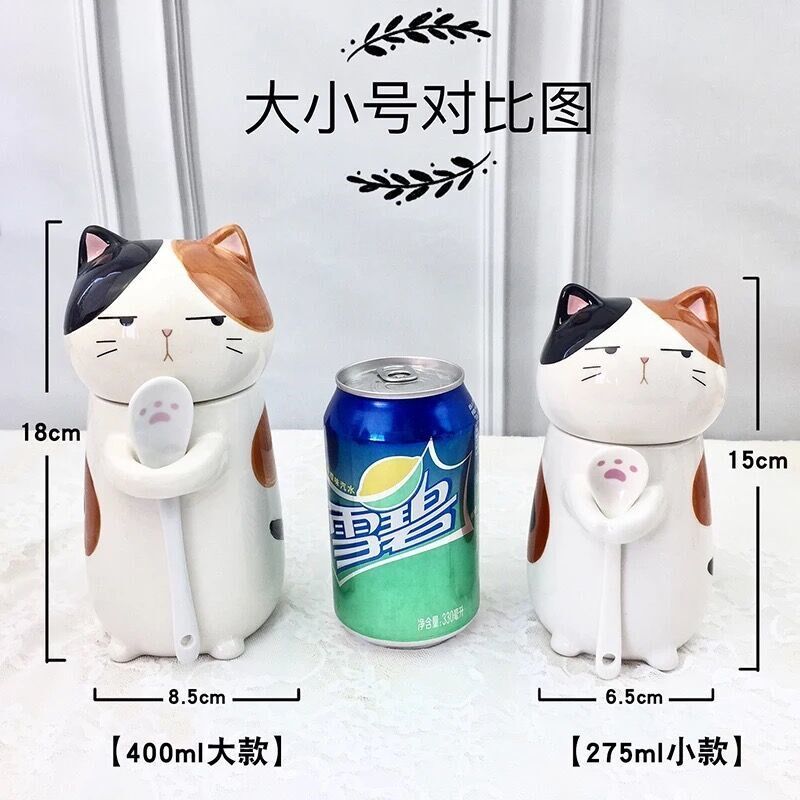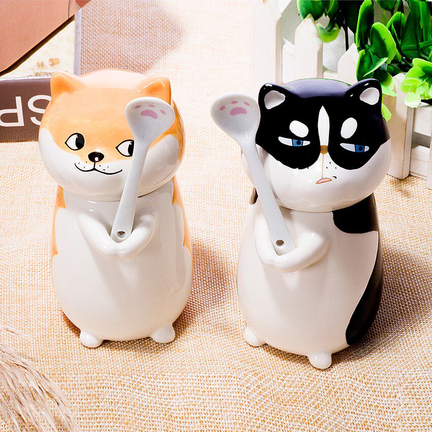 Unique shape cup couple cat animal creative ceramic mug birthday gift with cup lid spoon