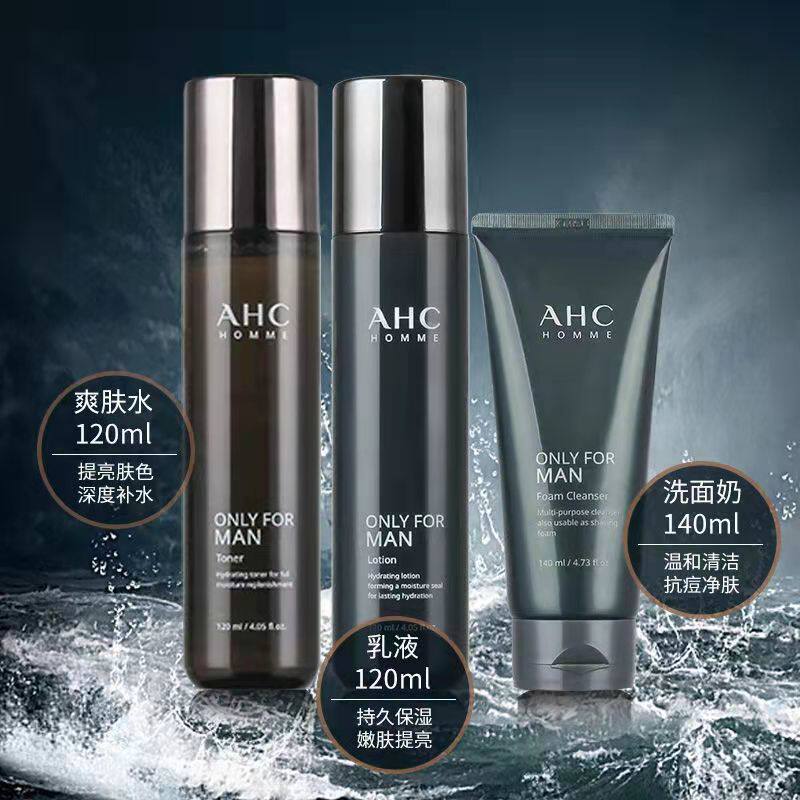 Korean AHC men's water milk suit three pieces of box oil control to black head deep cleaning official website skin care gift