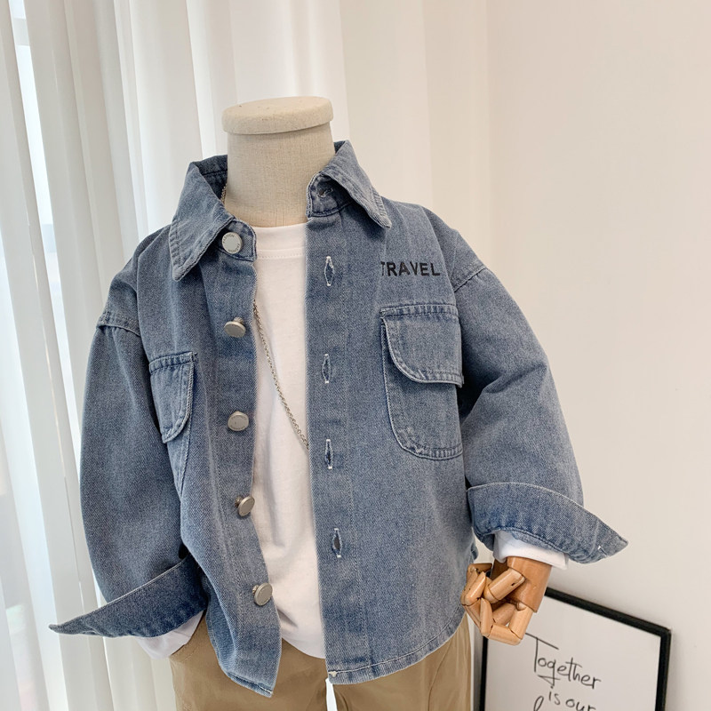Boy denim shirt 2022 new middle and child Korean version casual blouse handsome children spring and autumn slim fit jacket tide