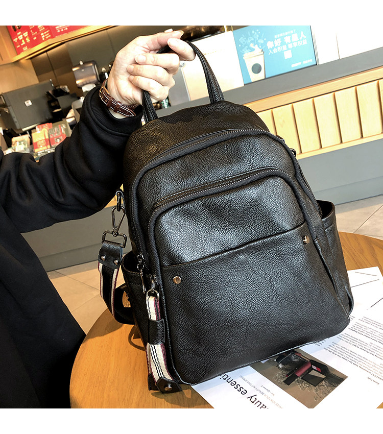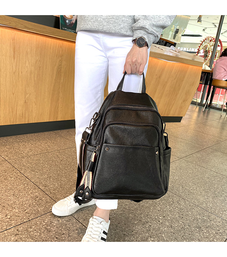 2023 New leather shoulder bag female with two - shoulder bag soft cow skin leisure travel backpack tide