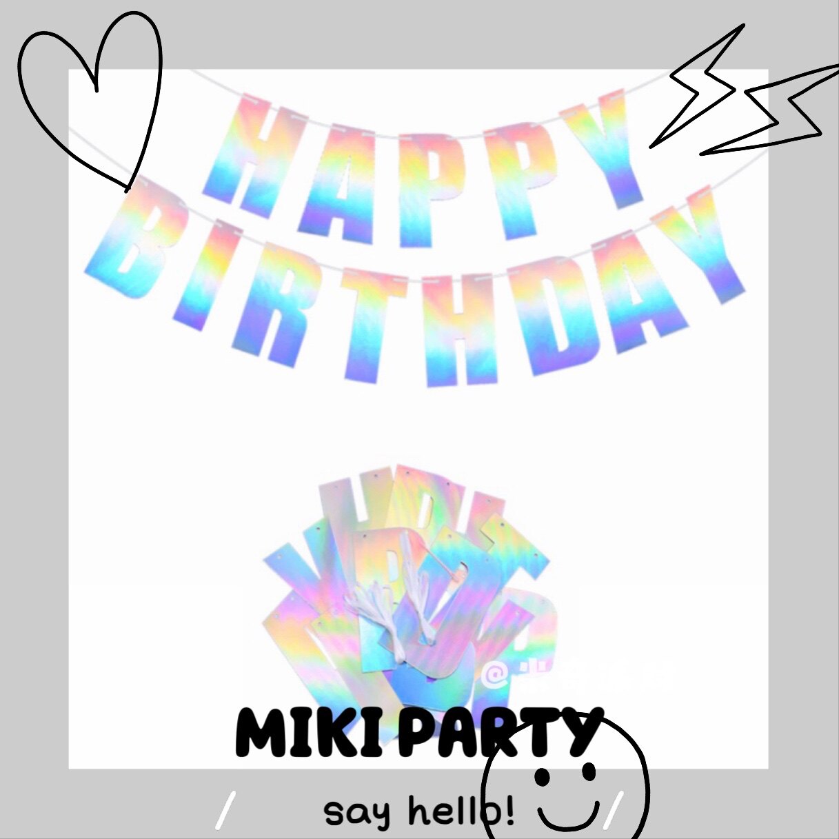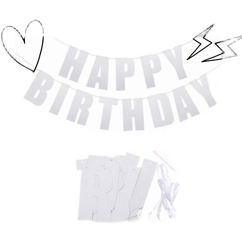 HappyBirthday pull flag English alphabet banner Laser glitter pearl paper decoration
