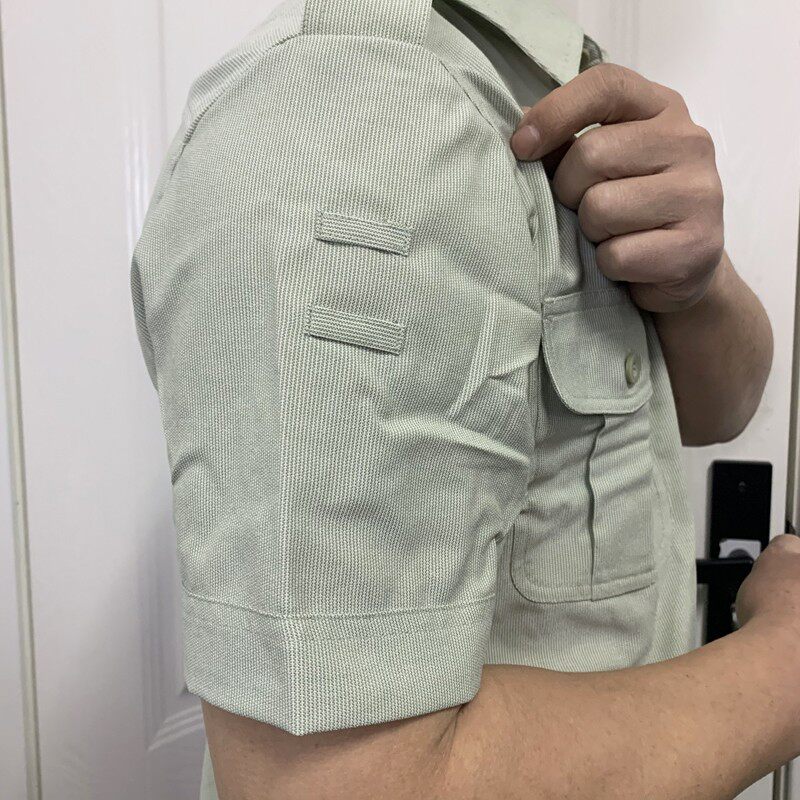 Short Sleeve Summer Wear Jacket Men's Summer Green Positive Dress Free Ironing tip Straight drum to work speed dry short sleeve male