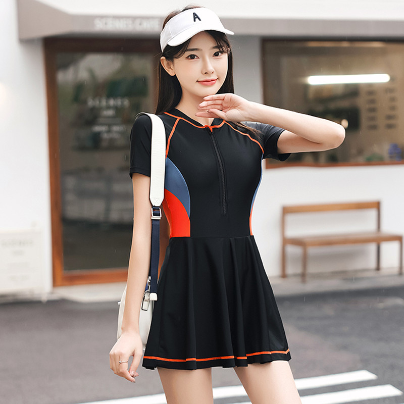Sports Swimsuit female conservative connexion skirt flat horn pants fat MM large-yard thin student hot spring swimsuit speed dry sleeves