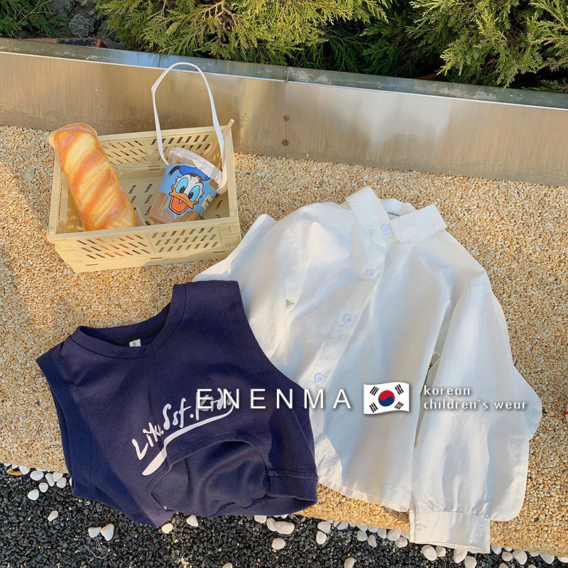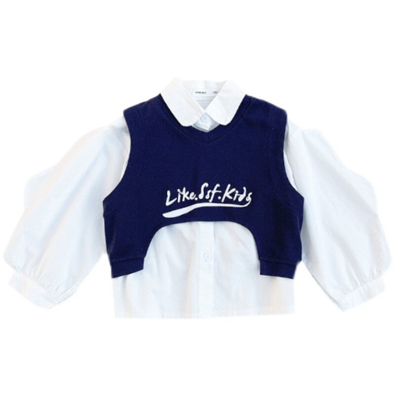 South Korea Gate Children Dress 2022 Spring Dress Girl Fashion Temperament Bubble Sleeve T Shirt Children Waistcoat Vest Two Sets