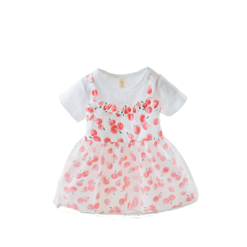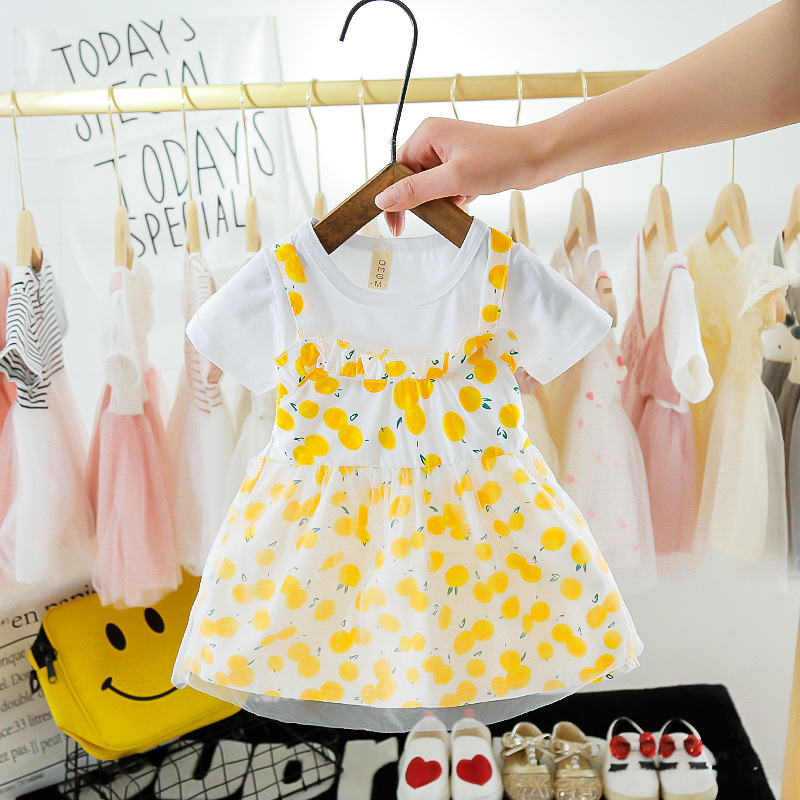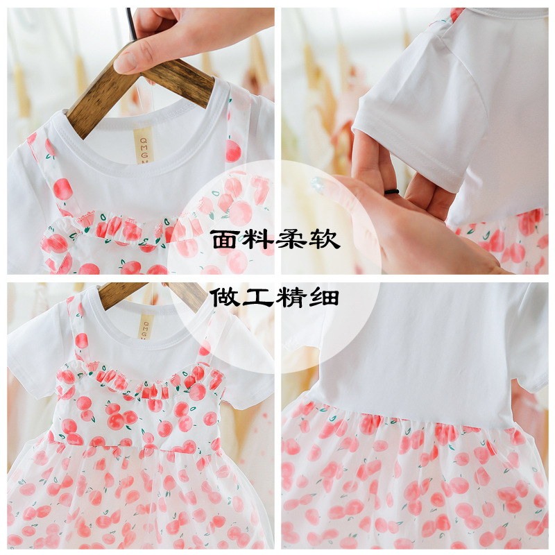 short sleeve female baby short sleeve foreign dress fake two baby girl summer thin and breathable little dress net yarn cute newborn baby