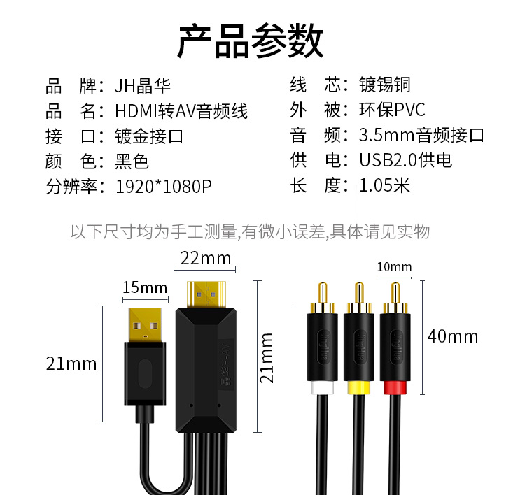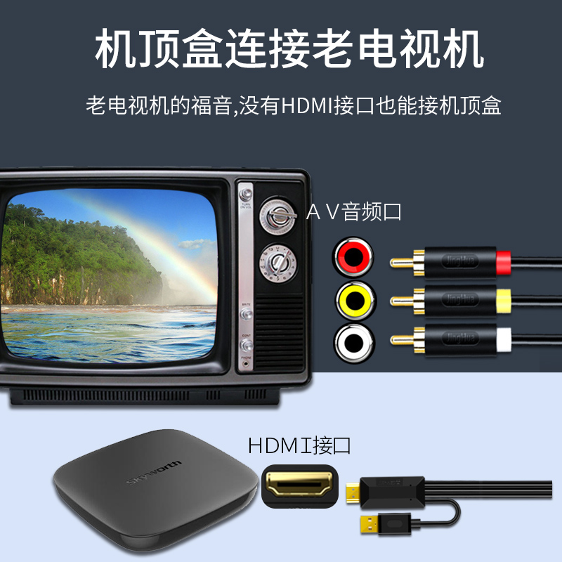 Jinghua HDMI to AV cable 3rca conversion cable is suitable for Xiaomi TV box machine upper box interface to connect to TV