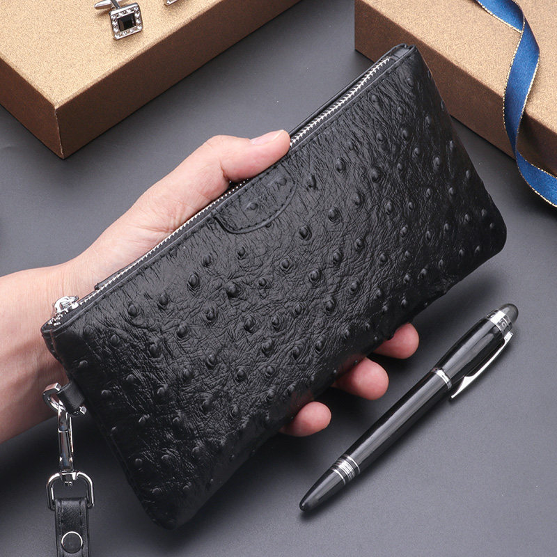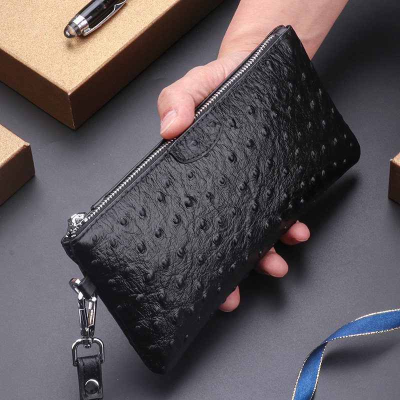 Genuine Leather Wallet Men's Long Small Handbag Men's Clutch Bag Ostrich Pattern Mobile Phone Bag Zipper Leather Hand Bag