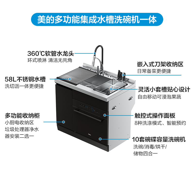 Midea integrated sink dishwasher integrated home embedded two-star disinfection smart kitchen integrated machine XH07