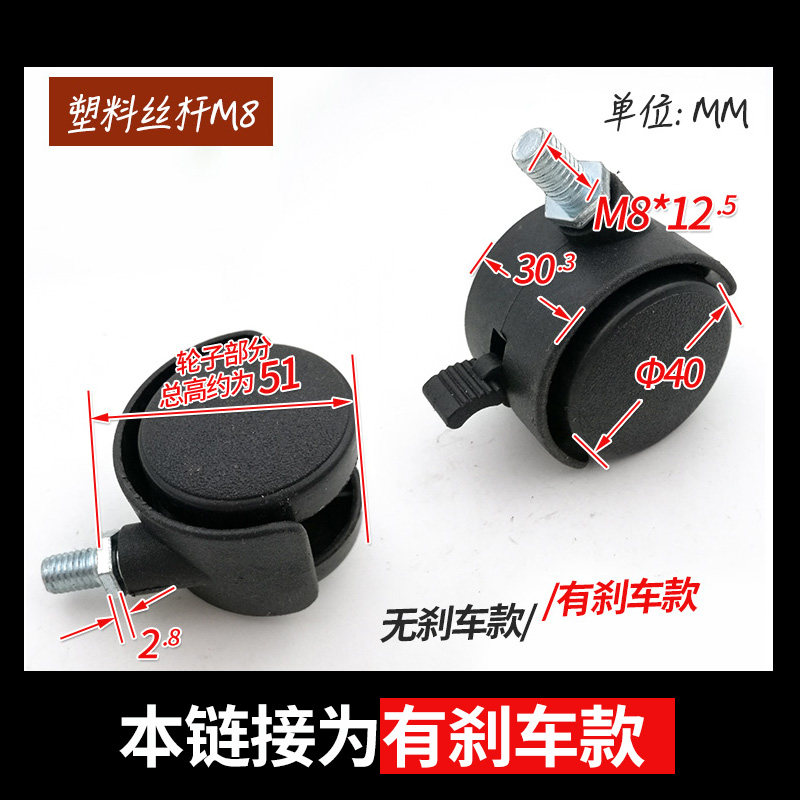 1 5 inch M8 silk tooth with brake furniture black universal mobile caster sofa wheel office chair wheel large liner
