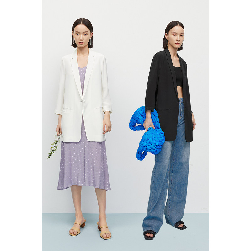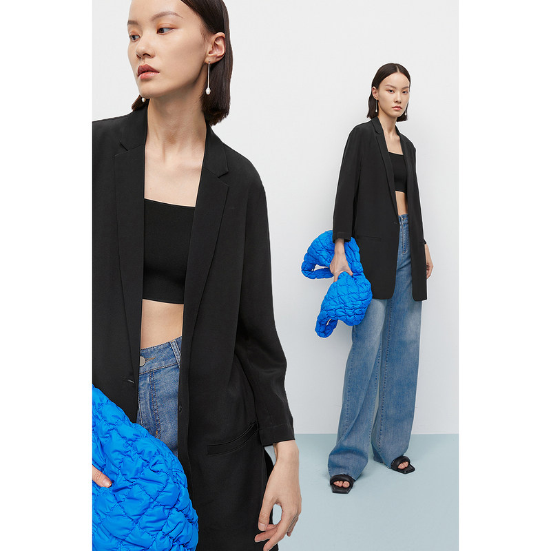 MM lemon 2022 spring new mulberry silk real silk commuter west suit black suit jacket female 5998110022Q
