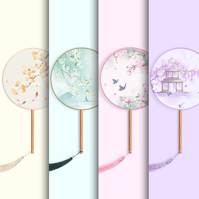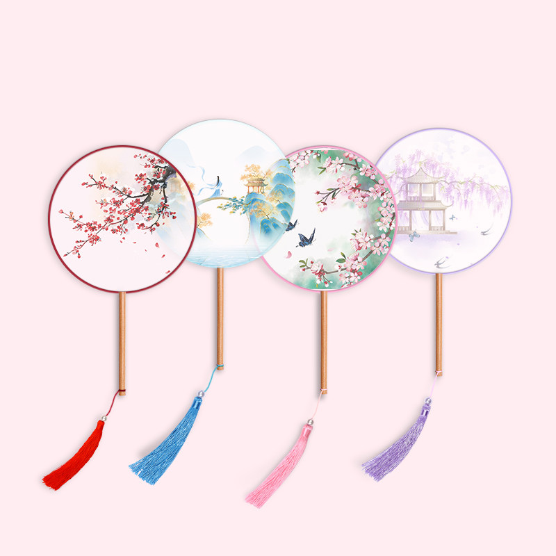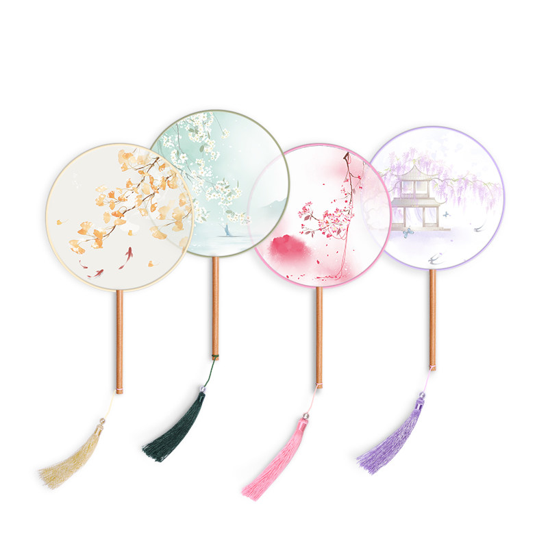 Specially Sheng ancient fan children summer semi-transparent long handle tassel dance fan female costume Hanfu cheongsam embroidery small round fan