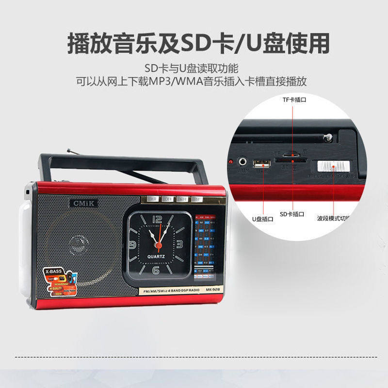 American imported radio high-sensitive chip full-band retro pluggable U disk AUX lamp clock AC and DC