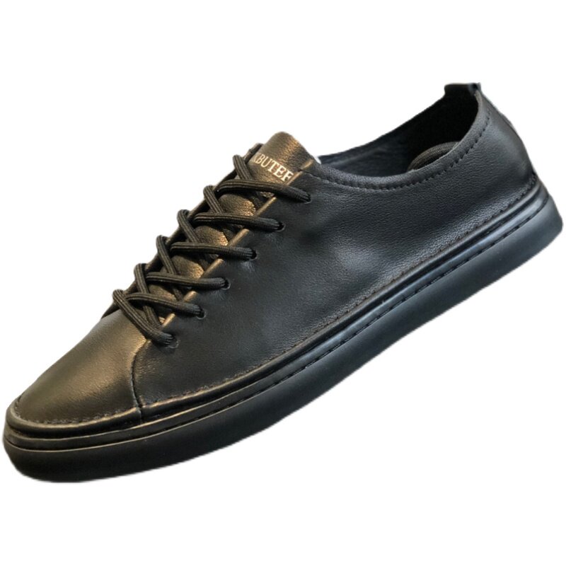 European station with breathable soft black slab shoes in 2022 summer new leather small white shoes male