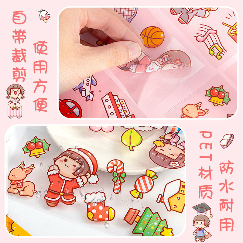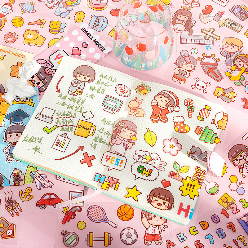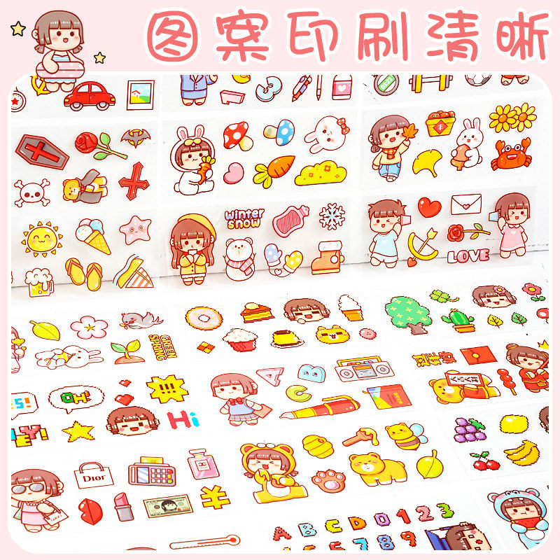 Small hemp fries sticker PET handbill sticker adhesive tape waterproof no-mark hand ledger sticker decoration small pattern cartoon cute little girl adhesive cup safety helmet mobile phone water glass diy paste figure sins