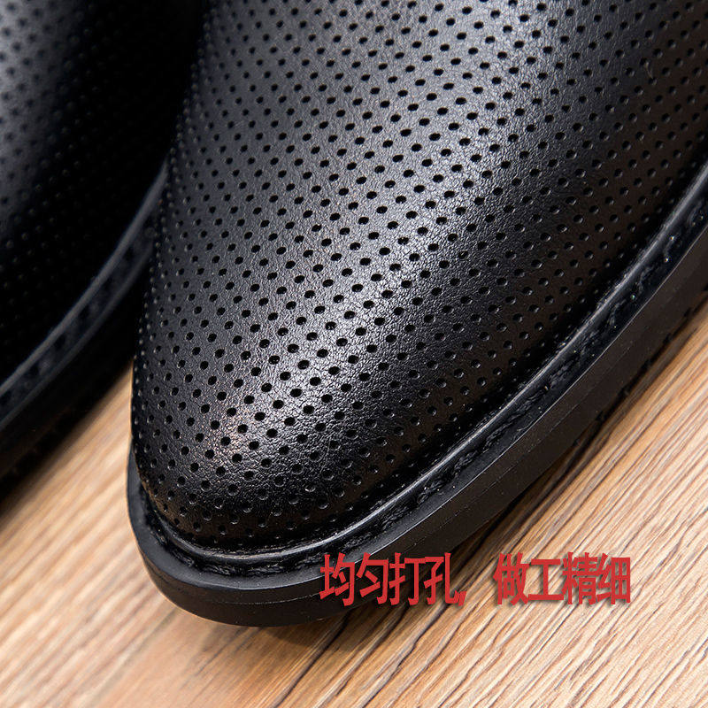 Summer Men's Breathable Business Casual Leather Shoes Men's Genuine Leather Korean Version Pointed Toe Soft Surface Leather British Formal Dress Heightening Men's Shoes
