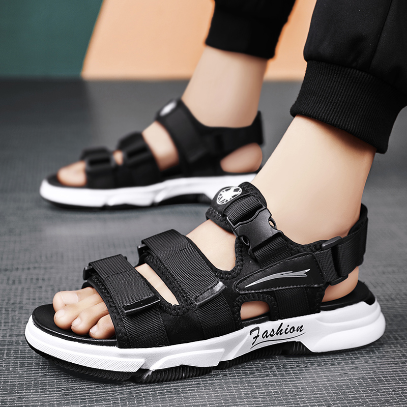 Men's shoes Summer 2022 new men's sandals Anti-slip wear and wear Magic sticker Junior High School High School Dew Toe Beach Shoes