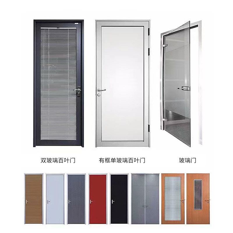 84 double-sided transparent tempered glass shutters 84 single-sided tempered glass 84 double wood finishes separated glass shutters transparent tempered glass loop leaves ecological wood door colour details